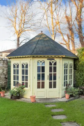 Positioned to the rear of this low-density gated development, the grounds upon which the property resides are nothing short of exemplary. Mindful in its design, the owners have a number of seating areas accessed from different rooms in the house, to ensure maximum enjoyment of the outside space. They also put in a very high quality Shomera home office into the garden and an attractive octagonal hot tub garden room. The plants and shrubs dotted around the garden are beautifully laid out and equally well maintained and the sun can be enjoyed throughout the day from one of the several outdoor seating areas.