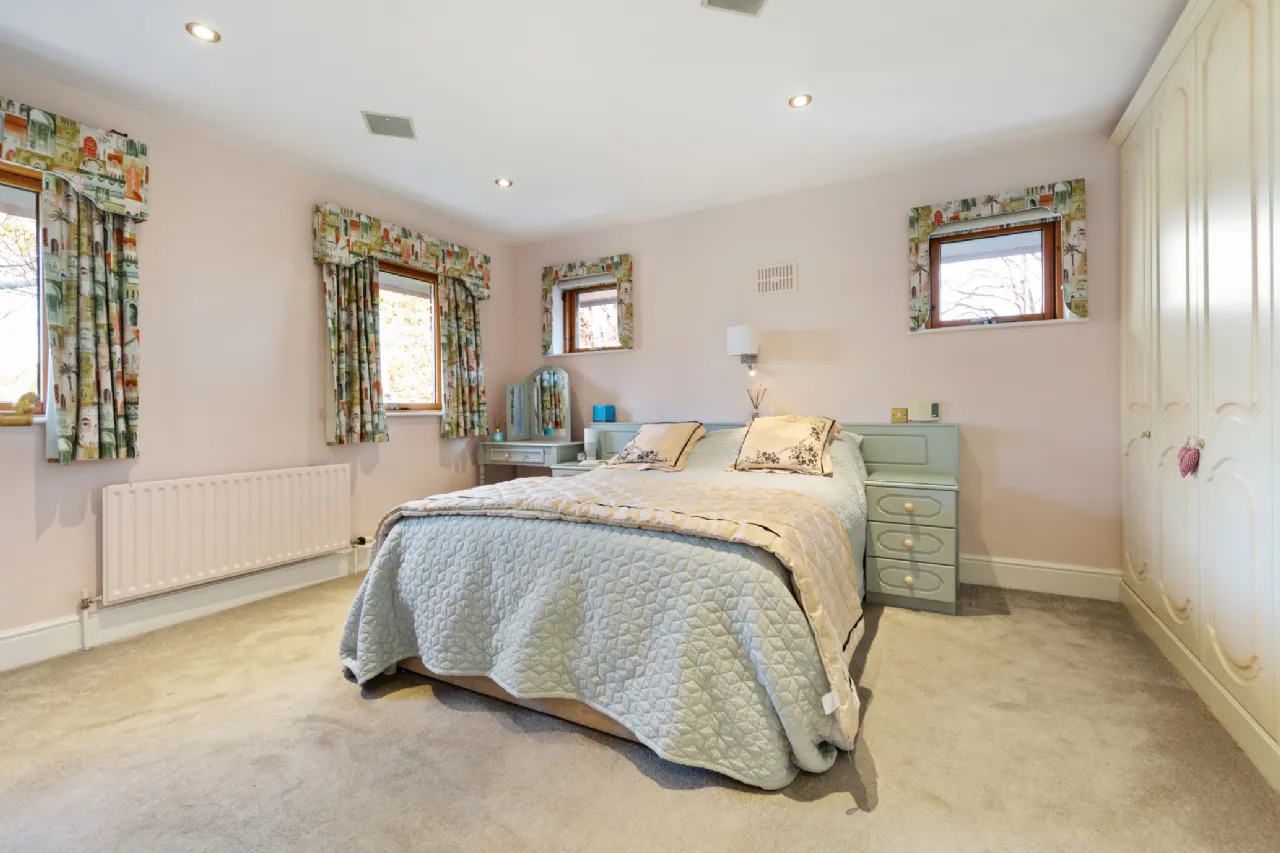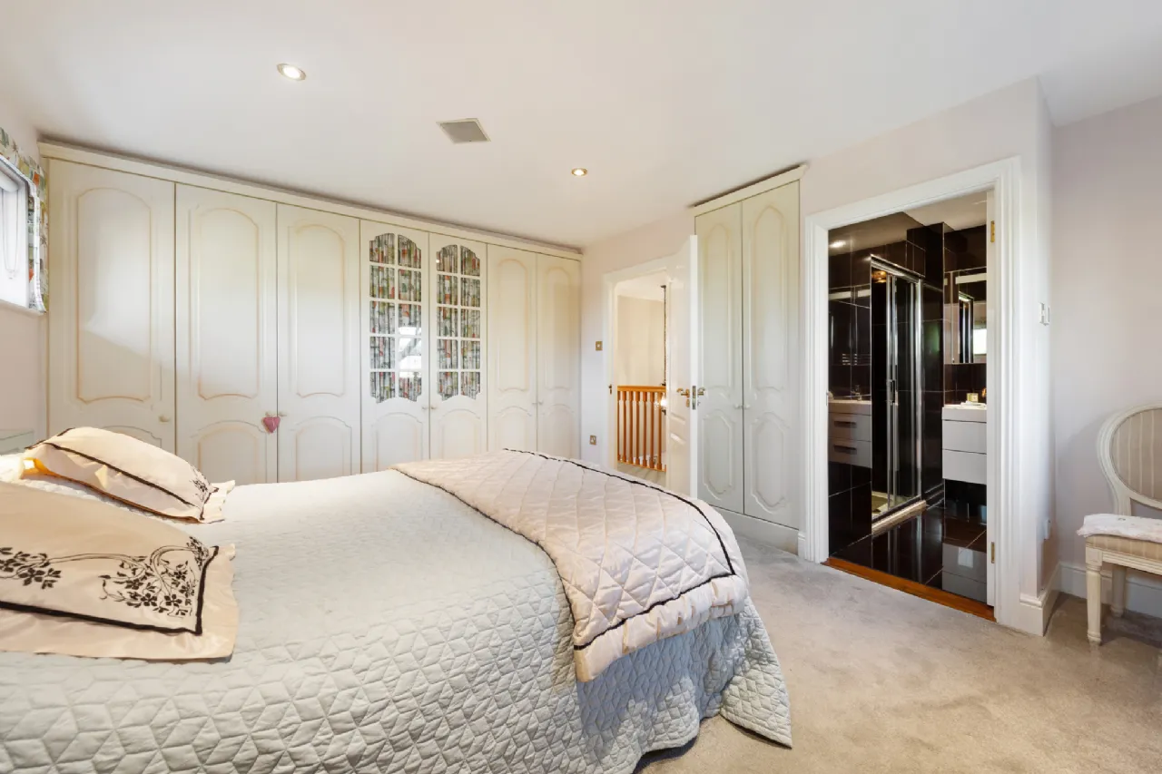 Principal Bedroom 4.65m x 4.18m Wall to wall built in wardrobes, dual aspect, recessed lighting