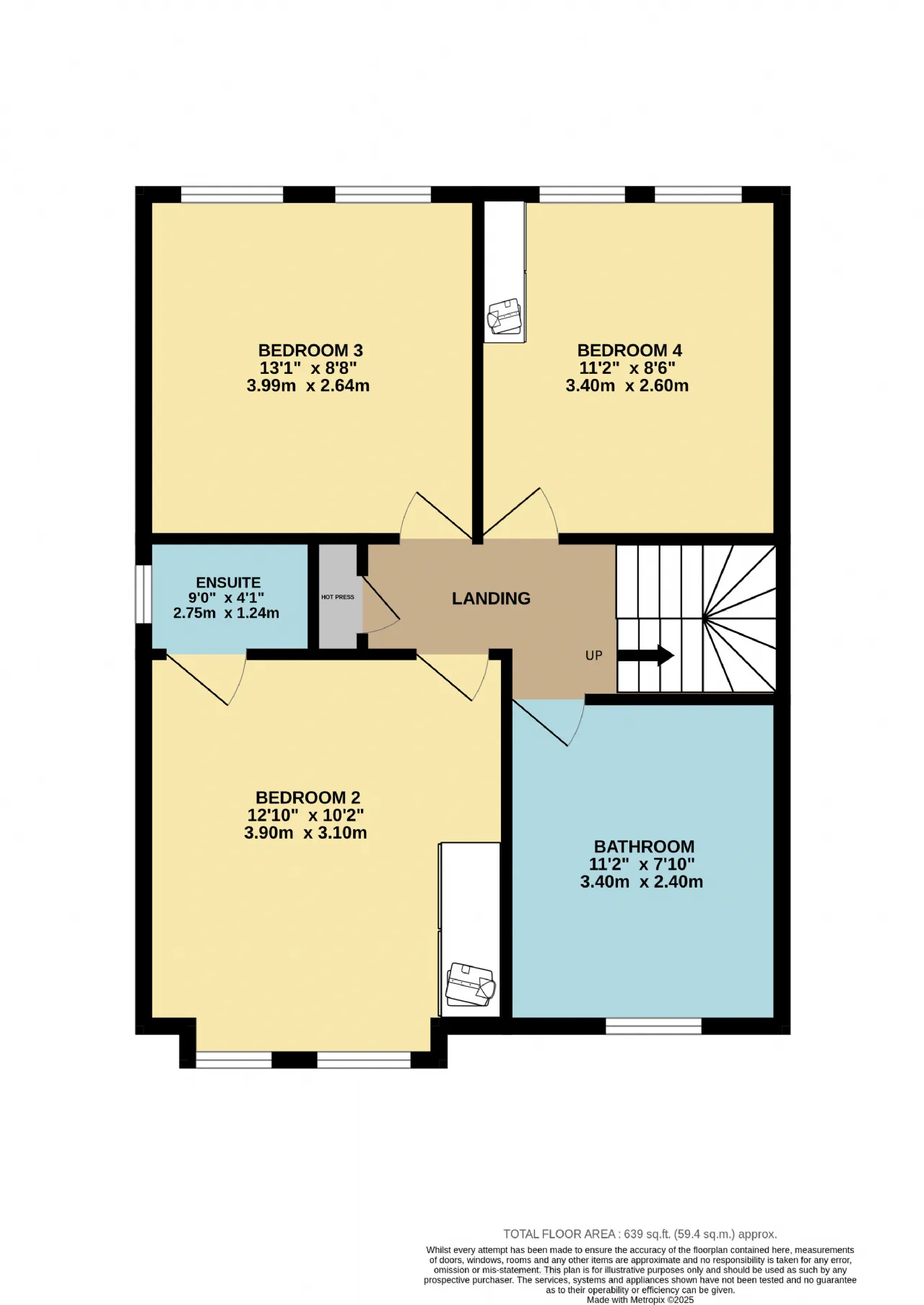 Bedroom 2 3.9m x 2.64m To the rear of the property with fitted wardrobes and Balterio laminate flooring.