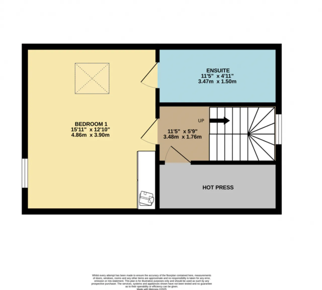 Main Bedroom 4.68m x 3.9m The room offers elegant floor-to-ceiling panelling, bespoke fitted wardrobes and a skylight overlooking the natural landscape that captures the morning sun. There is additional storage in the eves for added convenience and practicality. En-Suite Featuring a shower enclosure, floating sink, and WC, the en-suite is partially tiled and includes a heated towel rail. A large skylight and spot lighting provide plenty of natural and ambient light.