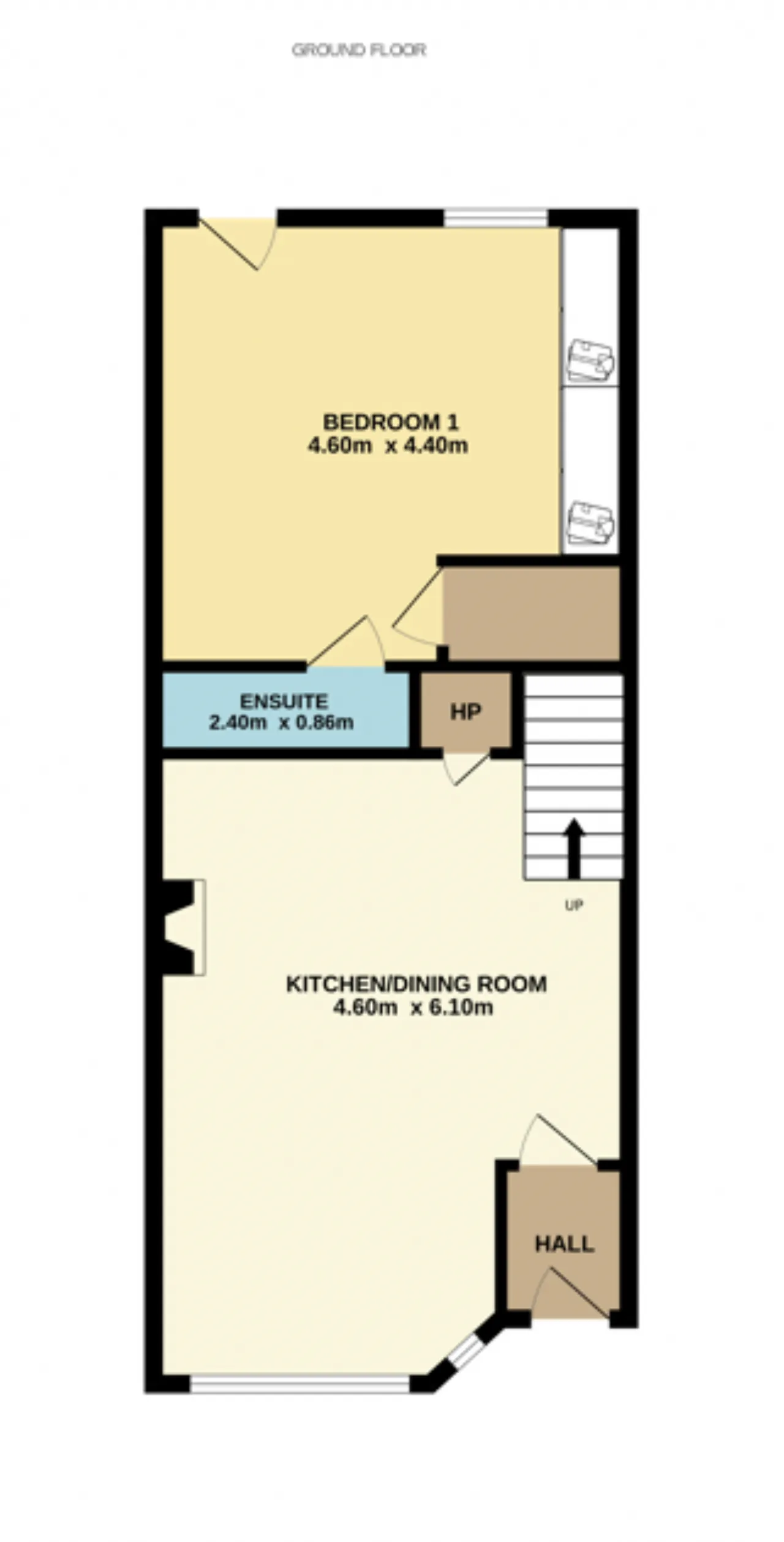 Bedroom 1 4.6m x 4.4m Fitted wardrobes, triple glazed windows and glass door to rear garden