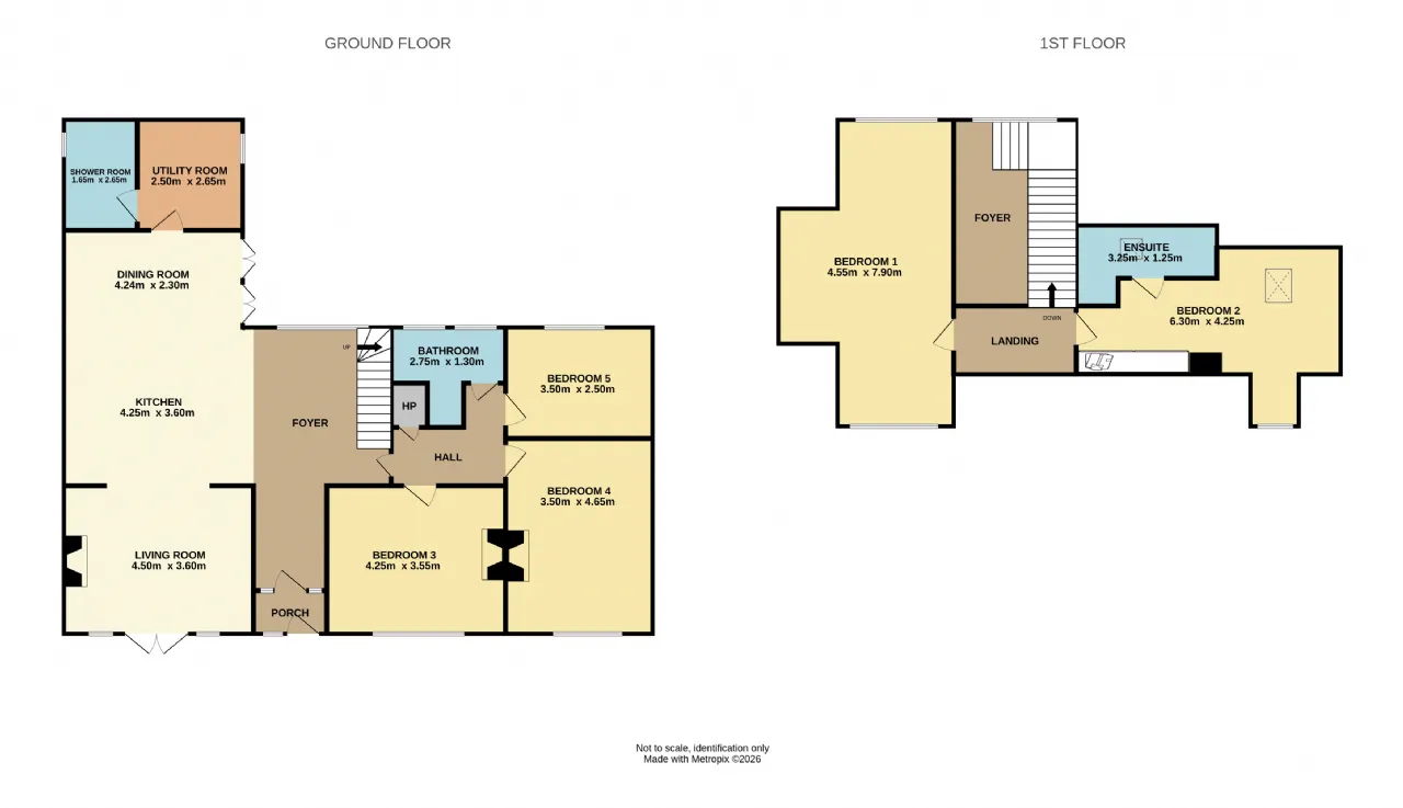 The property boasts a thoughtful and versatile layout designed for modern family living. On the ground floor, a welcoming foyer leads seamlessly into the living room and the open-plan kitchen and dining area, creating a bright and interconnected space ideal for both relaxing and entertaining, with stunning sea views. Practical spaces include a utility room, a shower room. The ground floor also comprises 3 spacious bedrooms and a family bathroom.