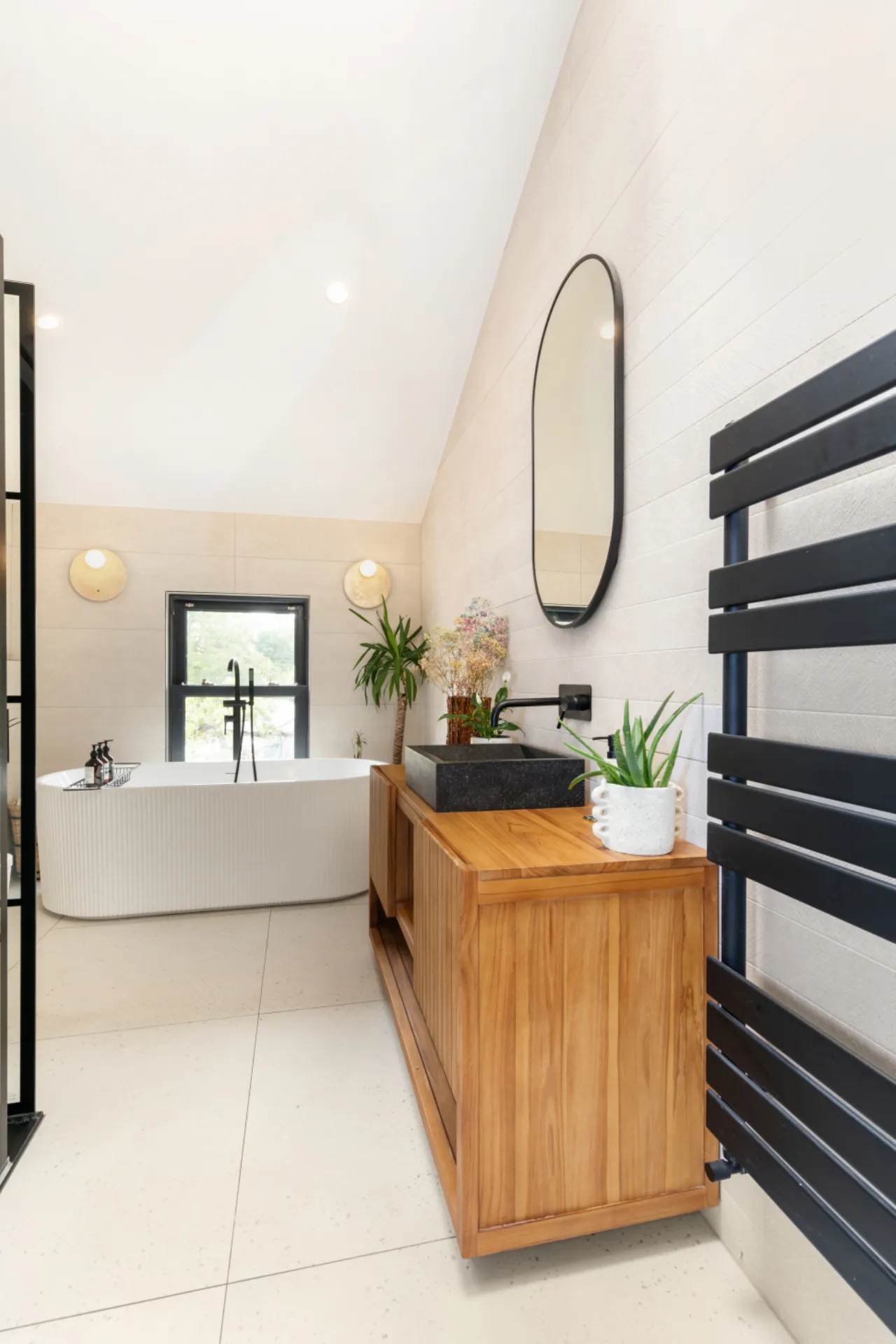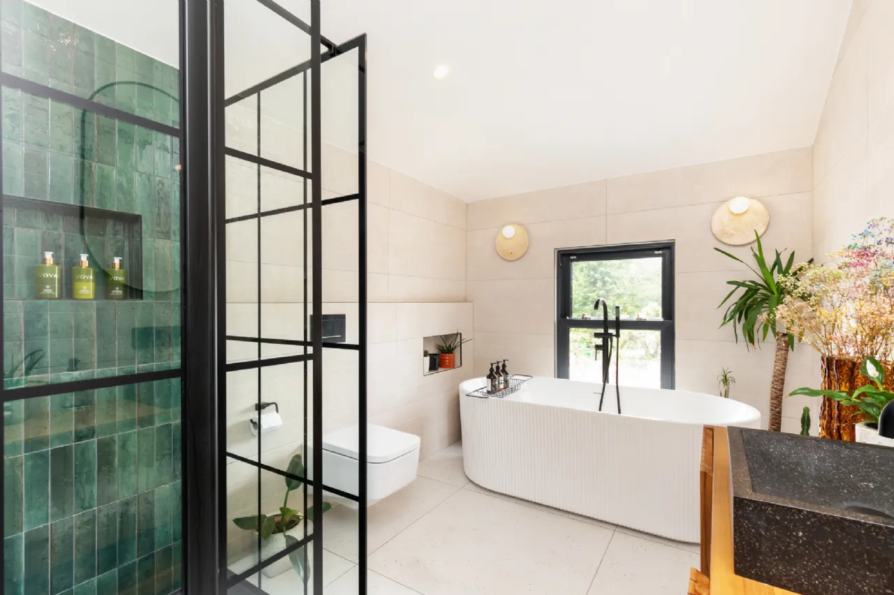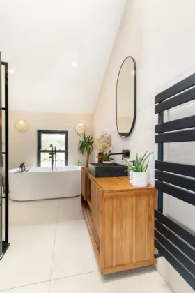 Bathroom 3.6m x 2.3m Luxuriously appointed, newly fitted bathroom with beautiful fixtures and fittings. The suite comprises wall hung w.c, wash hand basin with a large fitted storage unit, double shower and free standing bath.