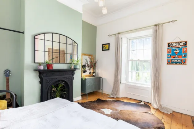 Bedroom 1 5.2m x 4.2m Spanning the width of the house, this large bedroom is full of light and has a great view of the Phoenix Park. Original features include cast iron fireplace, polished wooden floor, picture rails, ceiling covings and rose. Fitted wardrobes offer plenty of storage space.