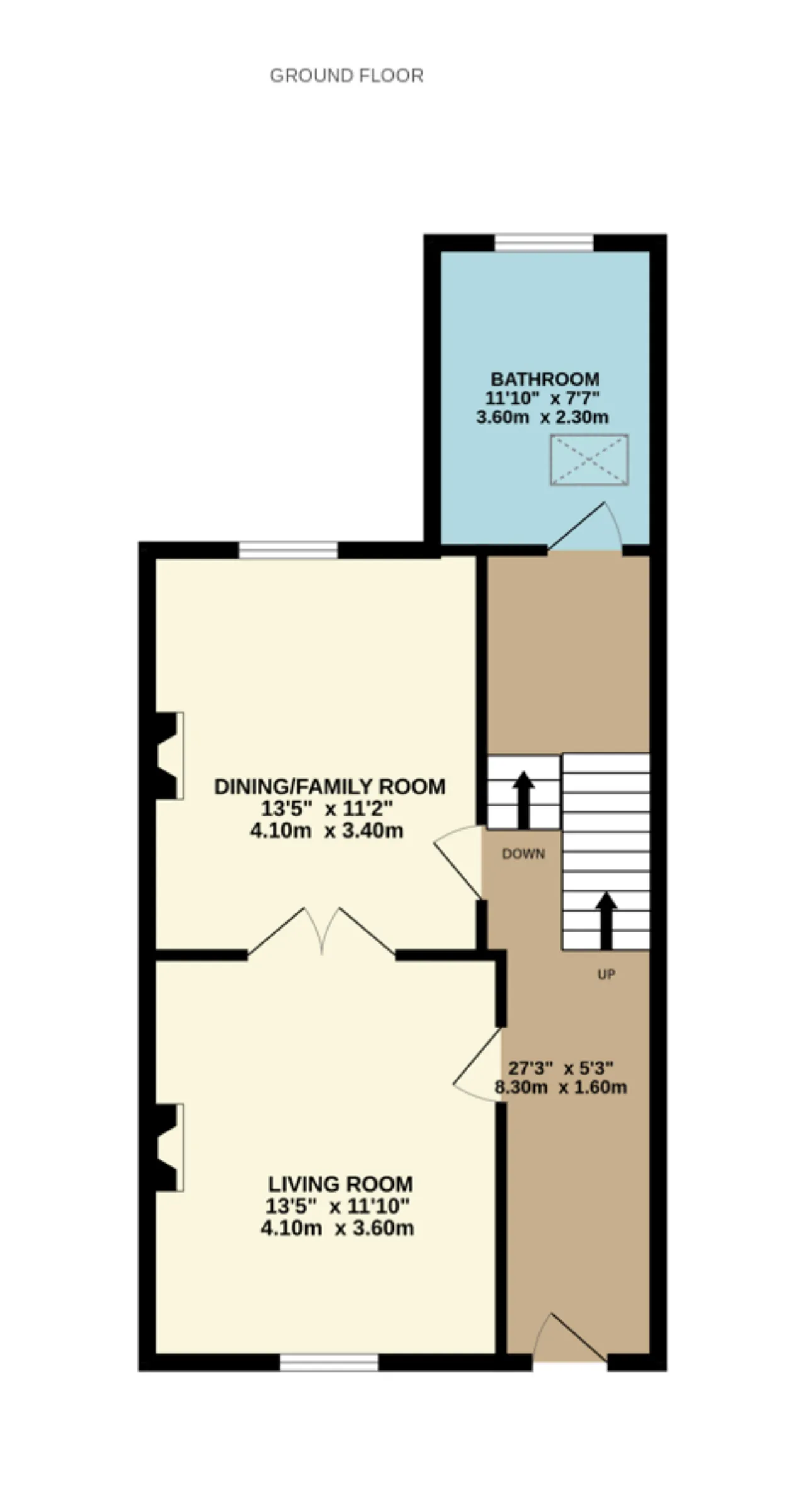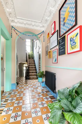 Dining Room/ Family Room 4.1m x 3.4m Another lovely reception room with cast iron fireplace, polished wooden floor and ceiling covings. A sash window overlooks the rear garden.