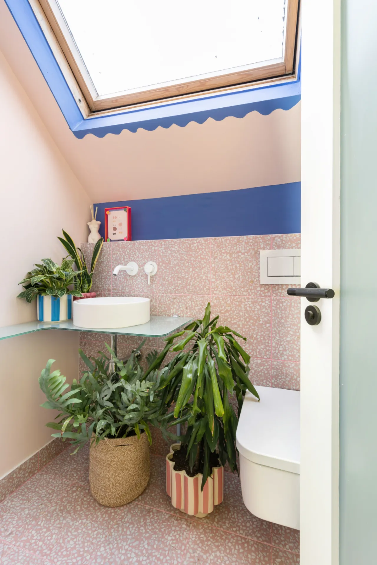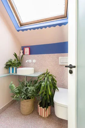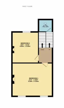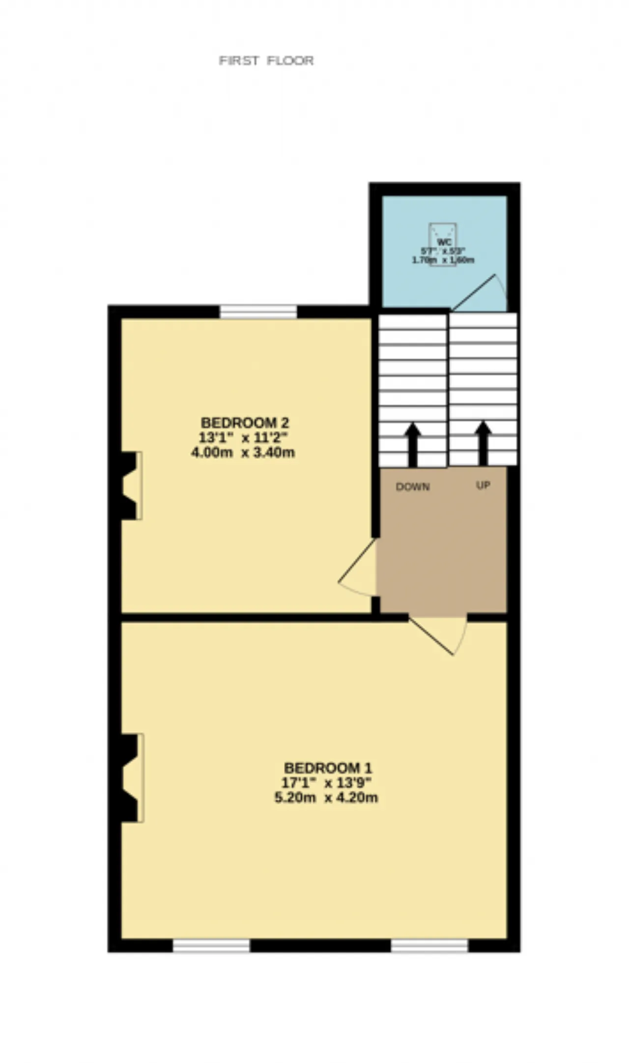 W.c 1.7m x 1.6m Located a short flight of steps from the first floor, this newly fitted suite comprises w.c and wash hand basin with fitted shelving. A skylight allows light into the room.