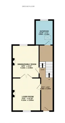 Living Room 4.1m x 3.6m This is a very well proportioned room with a large sash window with shutters with a view towards the Phoenix Park, the floor has been polished and other original features include a cast iron fireplace, picture rails, ceiling covings and ceiling rose. Double doors lead to the dining room/family room.