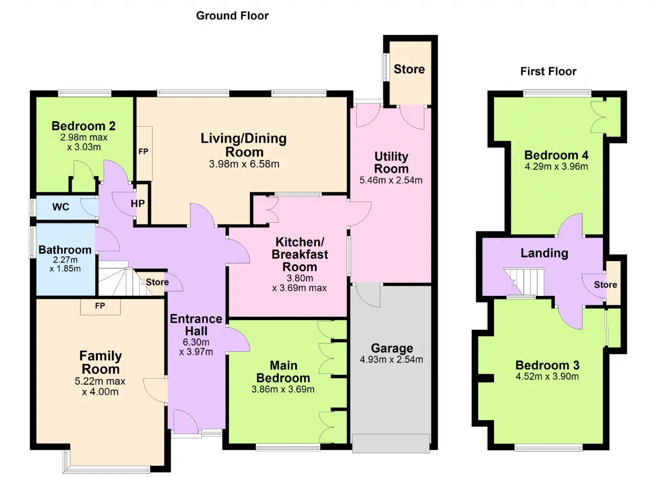 There is ample bedroom accommodation on offer, at ground floor level there are two double bedrooms located to the front and rear of the property, with two spacious double bedrooms located on the first floor. A tiled family shower room and separate w.c complete the accommodation.