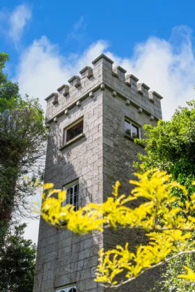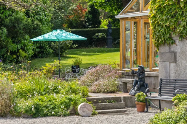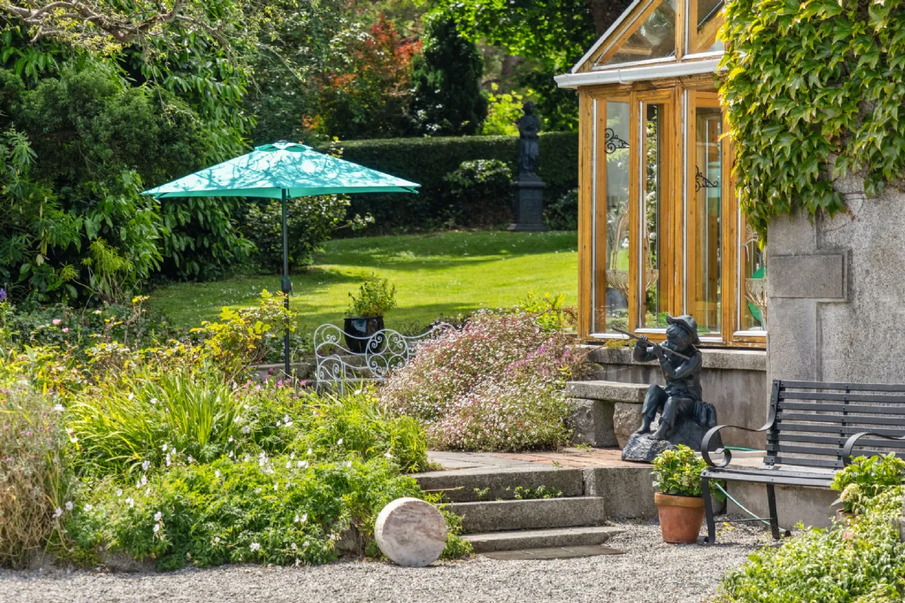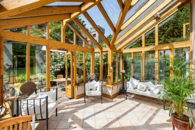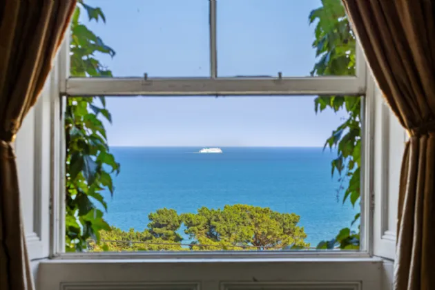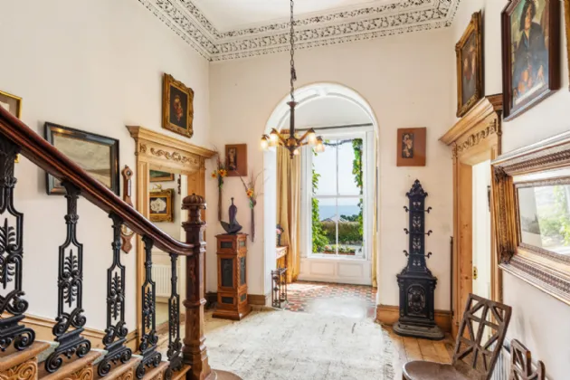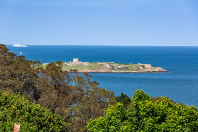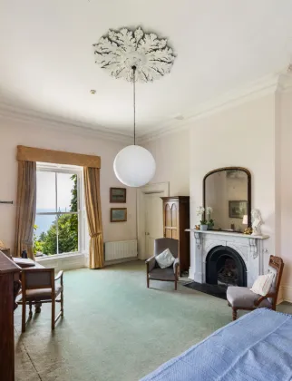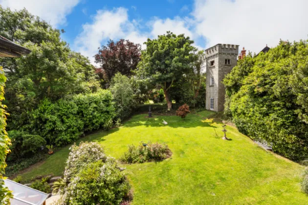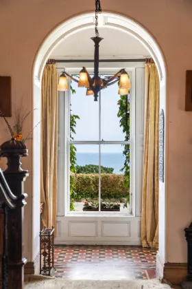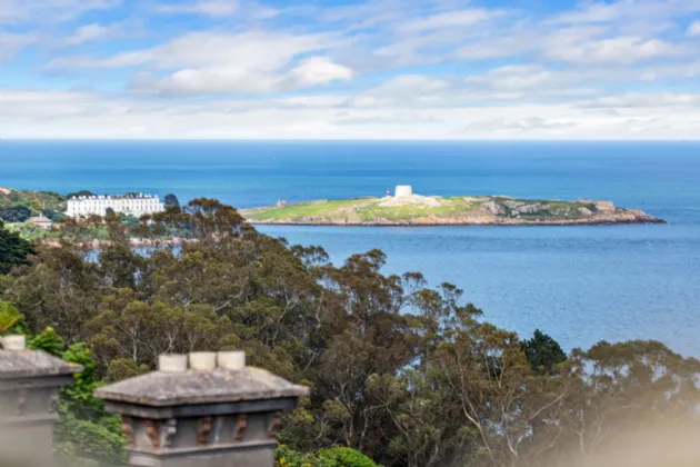 The breathtaking views over Killiney Bay are complimented by the property’s enchanting grounds, which feature a selection of mature plants and shrubs, including old roses, hydrangeas, cranesbill, lobelia, and fruit trees. A lawned tennis court at the rear awaits restoration, while the distinctive granite tower, known as "Spite Tower," adds unique character and potential for various uses.