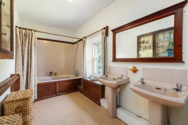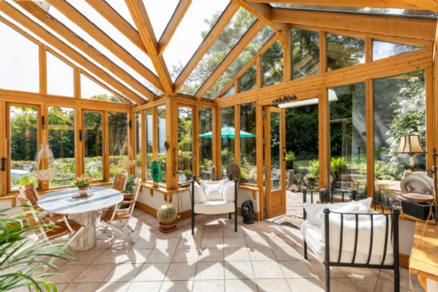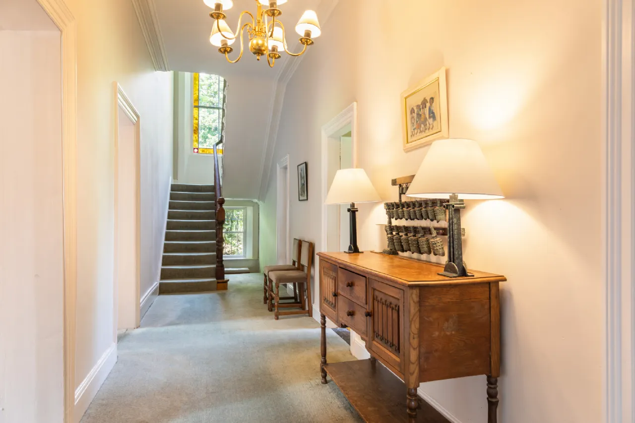 This grand residence boasts six generously sized double bedrooms, including two ensuite rooms in the main house, and three additional bathrooms. There is also a comfortable family room, welcoming kitchen, pantry, a number of additional storage rooms, a sunroom and conservatory.