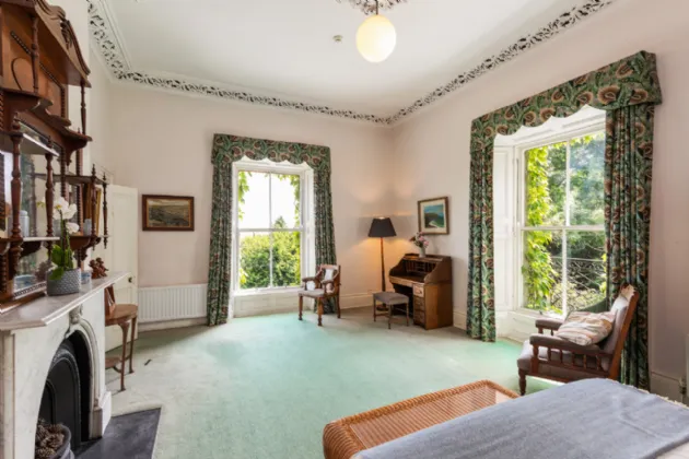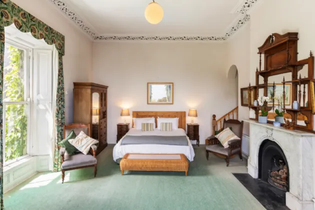 Bedroom 1: double aspect bedroom with ceiling coving, cornice work and centre rose. Marble fireplace with open fire.