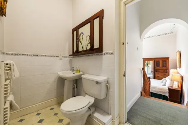 Family bathroom: with w.c., wash hand basin, bath with shower attachment. Plumbed for washing machine.