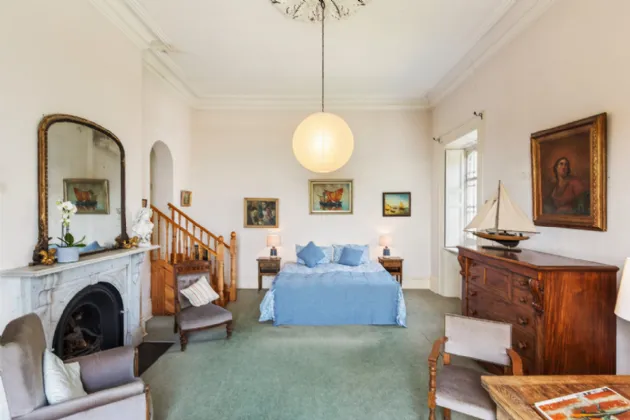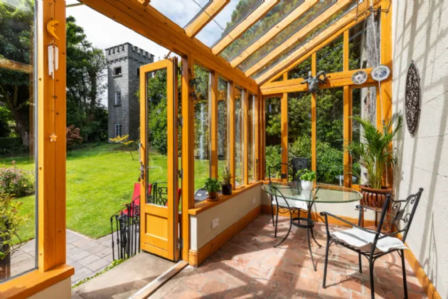 Tower: Externally mounted staircase to first floor room which could be a bedroom or library. Internal staircase to second floor multi-aspect (windows on all four sides) study with exquisite views over the Irish Sea and of the Sugar Loaf. Roof deck with cut stone balustrades.