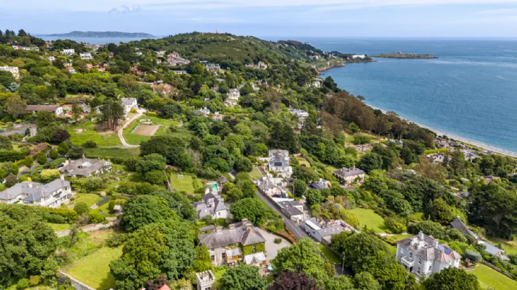 A long sweeping private driveway opens up to spectacular expansive views over Killiney Bay and this unique residence.