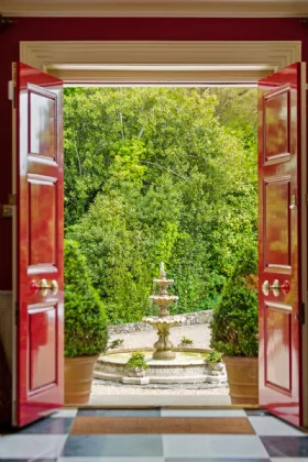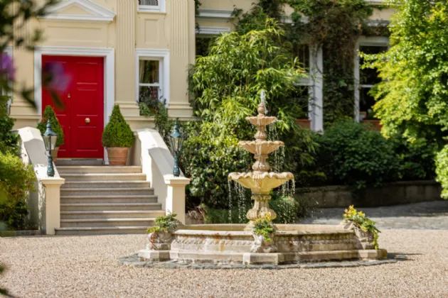 A stunning cut-stone wall, wrought iron railings and electronically controlled entrance gates lead to the property, where a sweeping driveway winds towards the house. The drive culminates in a circular forecourt centered around a striking feature fountain, and it is here that the impressive Kenah Hill reveals itself as one of Dublin’s finest homes.