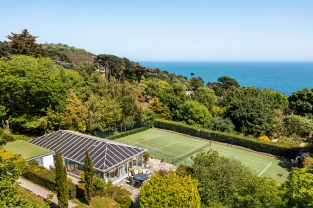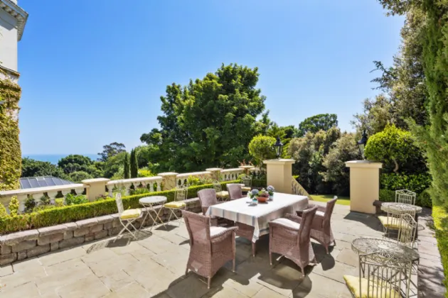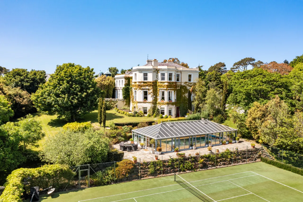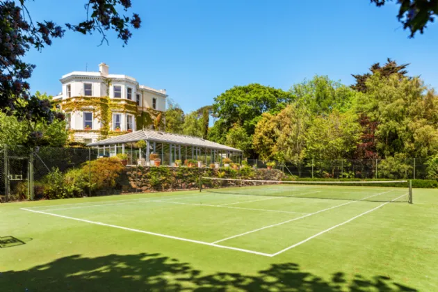 The gardens which extend to 2.8 acres approx.enjoy panoramic views of Killiney Bay across to Bray Head encompassing the North Wicklow Mountains. The grounds consist of a series of rolling lawns, raised terraces, mature plants and shrubs, gravelled pathways. There is an all-weather tennis court, heated indoor pool with solarium and bar area. Production allotment area and greenhouse. The elevated position provides spectacular views from different vantage points throughout the gardens. There are various patios and raised seating areas from which to take in the views. Off the kitchen area there is an enclosed courtyard with attractive granite faced out- building with storeroom and boiler house. In addition a wonderful sheltered terrace enjoys views of the Bay.