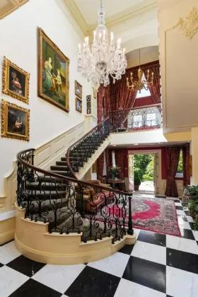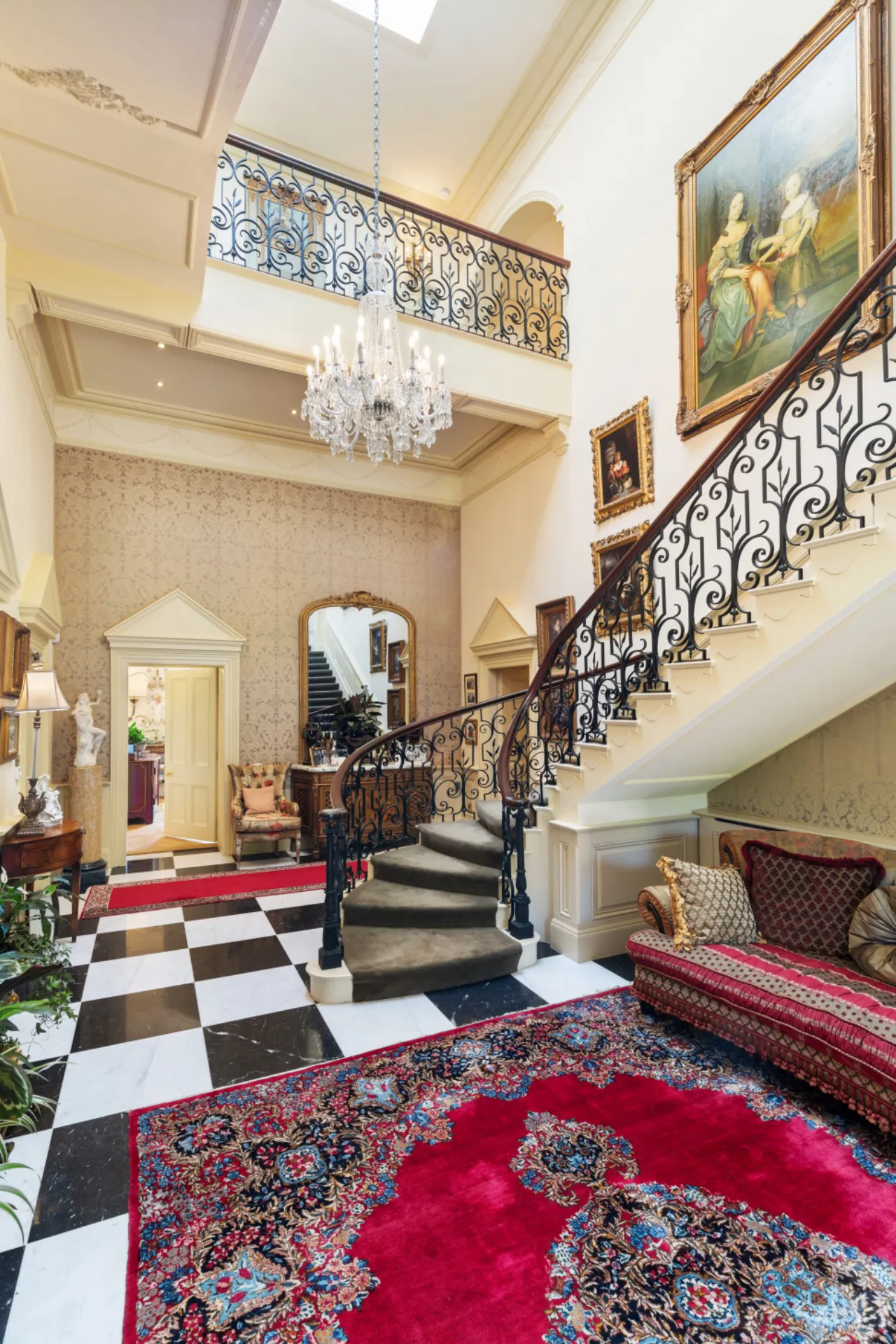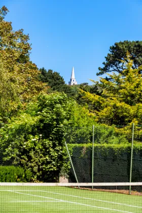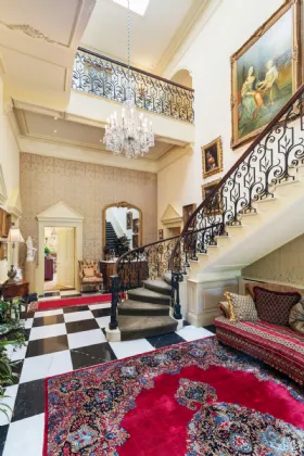 Boasting over 10,000 sq. ft. (929 sq. m) of accommodation, the home offers generously proportioned rooms with soaring ceilings and ornate cornicing. Beyond the house the grounds provide absolute privacy and tranquillity with mature landscaping and beautiful recreational amenities, including an all-weather tennis court and a large indoor heated swimming pool housed in a separate pool pavilion.
