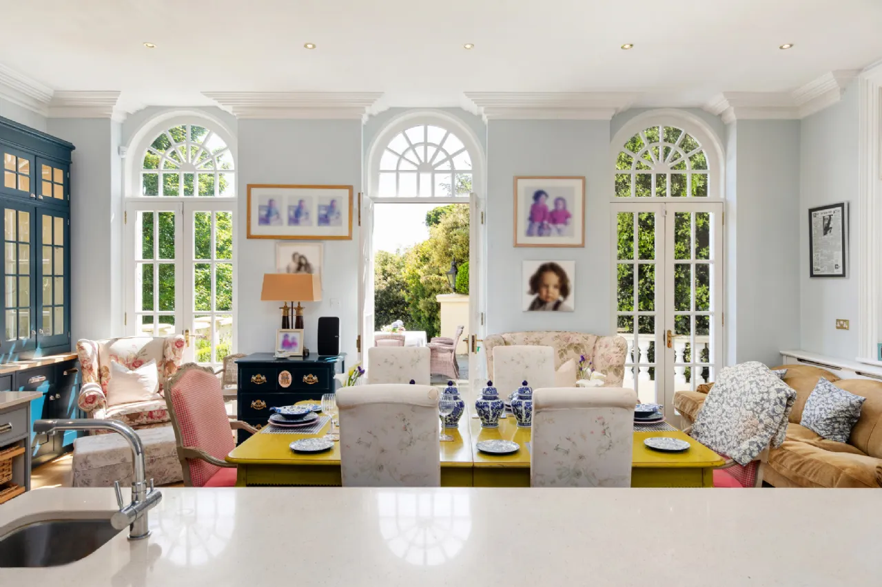 Kenah Hill having undergone an extensive and sensitive refurbishment exudes luxury at every turn. The interiors are a testament to exquisite craftsmanship, featuring rich colours, luxurious fabrics, hand-painted wall treatments, gilding, and opulent silk wallpapers. The result is a home of grand proportions that remains welcoming and warm. Spacious reception rooms offer the ideal setting for grand-scale entertaining, while a carefully designed layout seamlessly connects formal living areas with family spaces, making this a residence as perfect for ambassadorial functions as it is for comfortable family living.