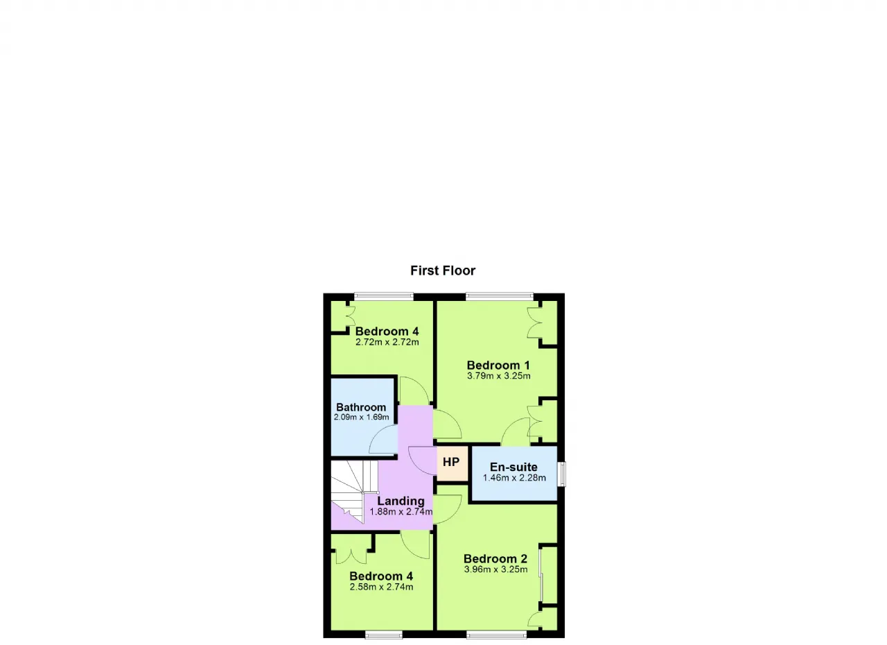 En-Suite 1.46m x 2.28m Fully tiled, shower with rain head attachment, W.C, wash hand basin.