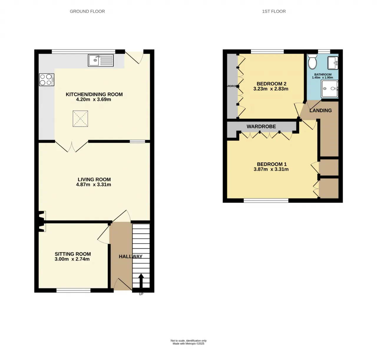 Moving to the first floor, you'll find two spacious bedrooms and a well-appointed family bathroom.