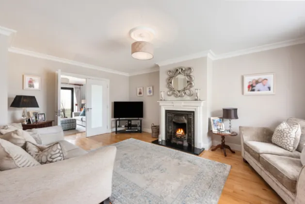 Family Room 3.56m x 4.27m Solid timber flooring, ceiling coving, ceiling rose, French doors accessing rear garden, double doors accessing open plan kitchen.