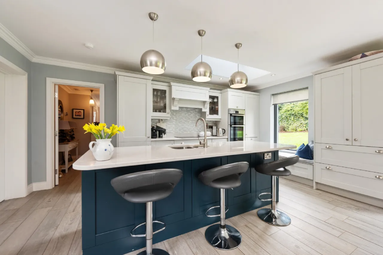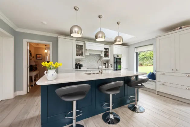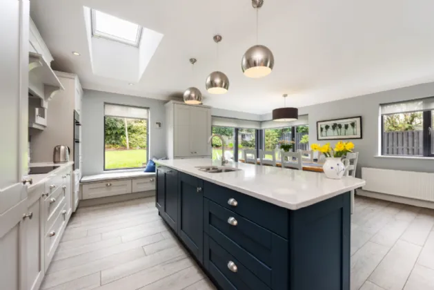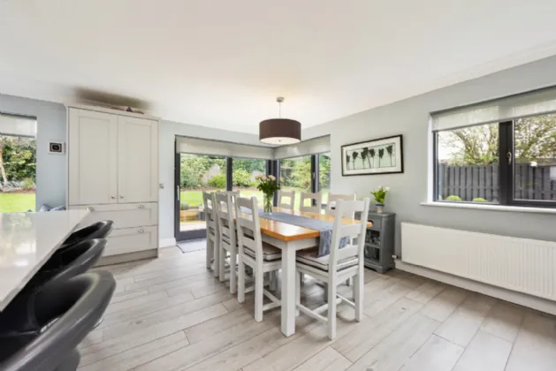 Undoubtedly the heart of the home lies in the open plan kitchen/dining room area which is flooded with natural light via its large sliding doors and windows which benefit from the orientation. Off the hallway lies the utility room and guest w.c. There is also an extremely spacious living room an additional family room and a separate T.V. room on the ground floor. Upstairs there are four good sized bedrooms. The main bedroom has the benefit of and en-suite bathroom) and a well-appointed family bathroom completes the accommodation.