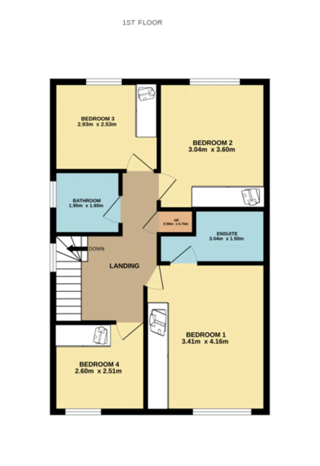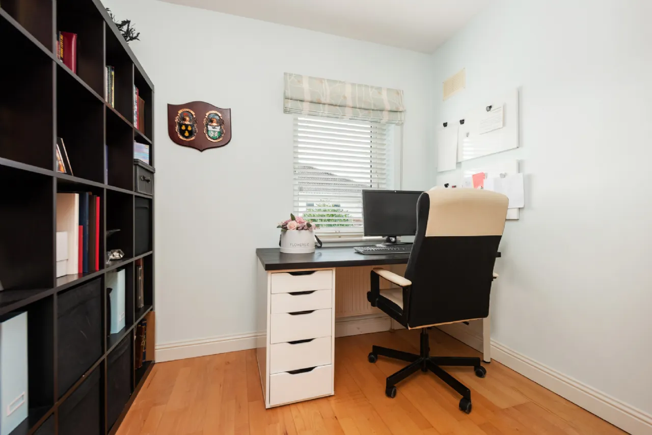 Bedroom 4 2.60m x 2.51m Currently in use as home office, fitted wardrobes and window over-looking front garden.