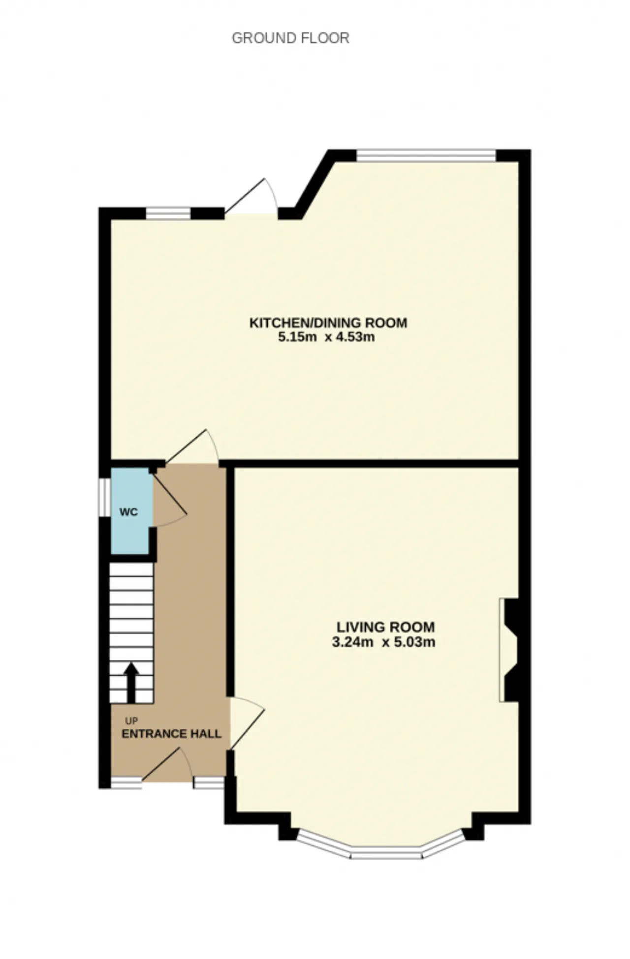 Guest WC 0.98m x 1.52m Tiled floor, WC, wash hand basin.