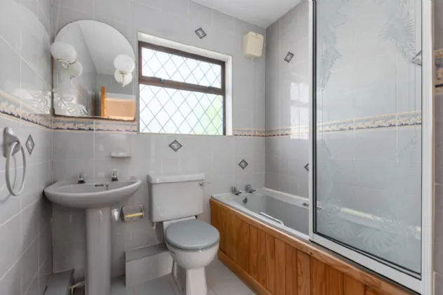 Bathroom Fully tiled bathroom, window to rear, bath, Triton electric shower, glass shower surround, wash hand basin with pedestal and w.c.