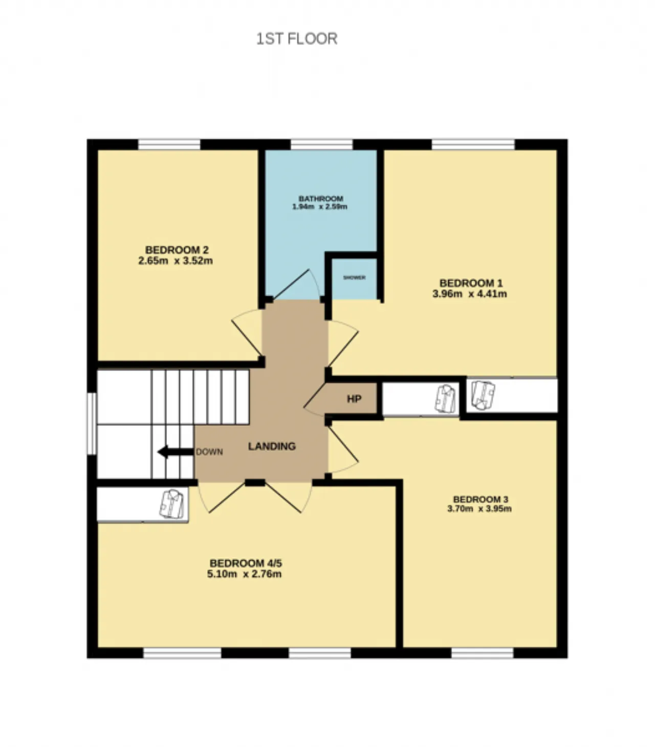 Bedroom 4/5 Currently in use as one bedroom (originally two bedrooms) with laminate flooring, fitted wardrobes and two windows to front.