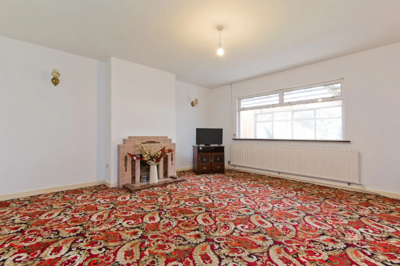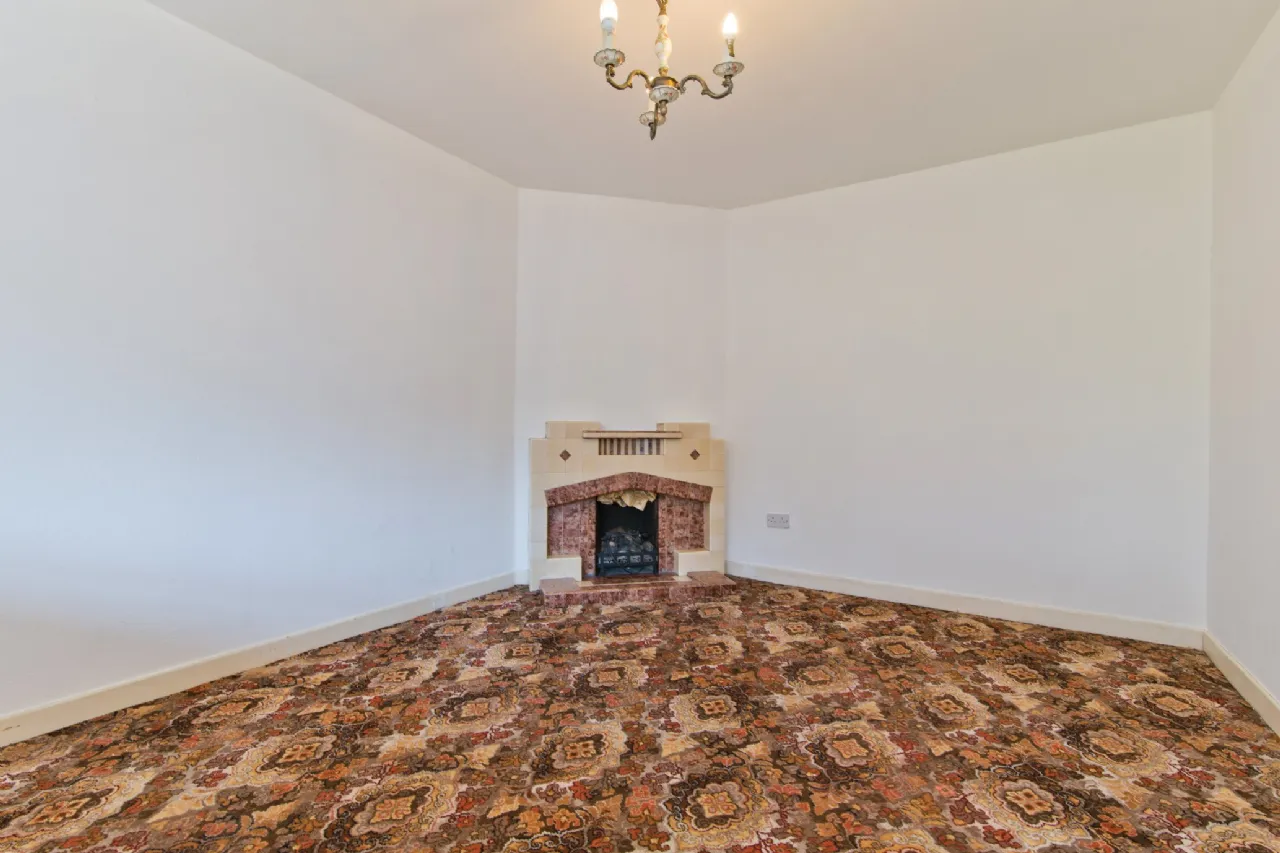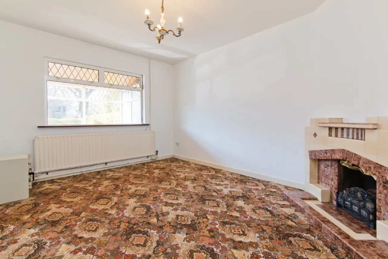 Living Room 4.28m x 4.69m Extremely large reception room with carpet flooring window to rear and original open fire with tiled surround and hearth.