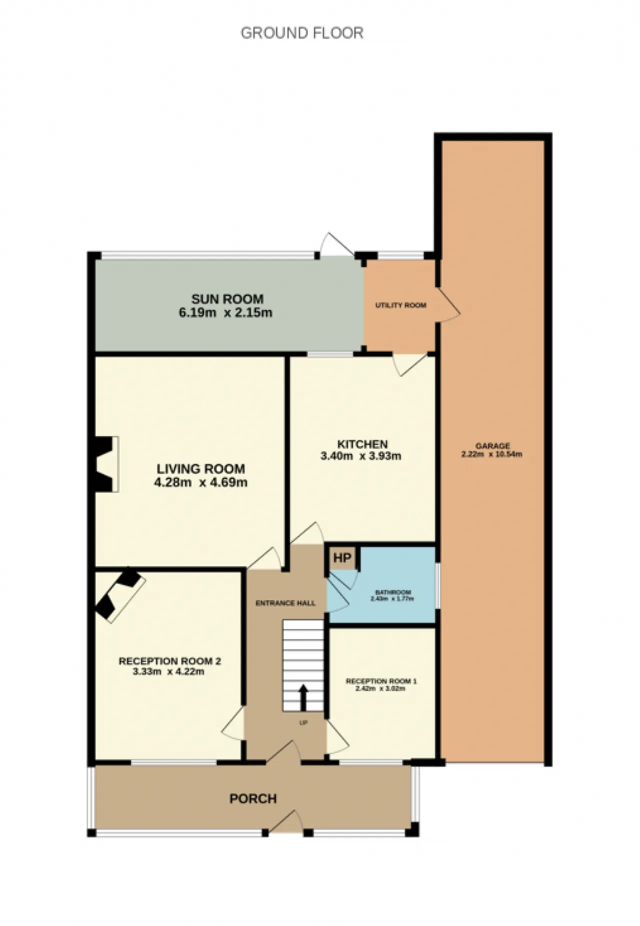 Reception Room 2 3.33m x 4.22m Situated to the left of the entrance hallway. Carpet flooring, window to front and open fire with original tiled surround and hearth. (possible bedroom).