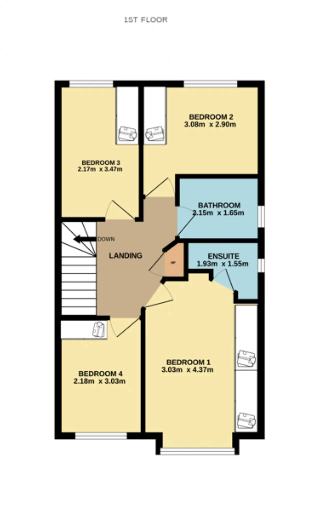 Bedroom 4 2.18m x 3.03m Another single bedroom with built-in wardrobes and laminate timber flooring.