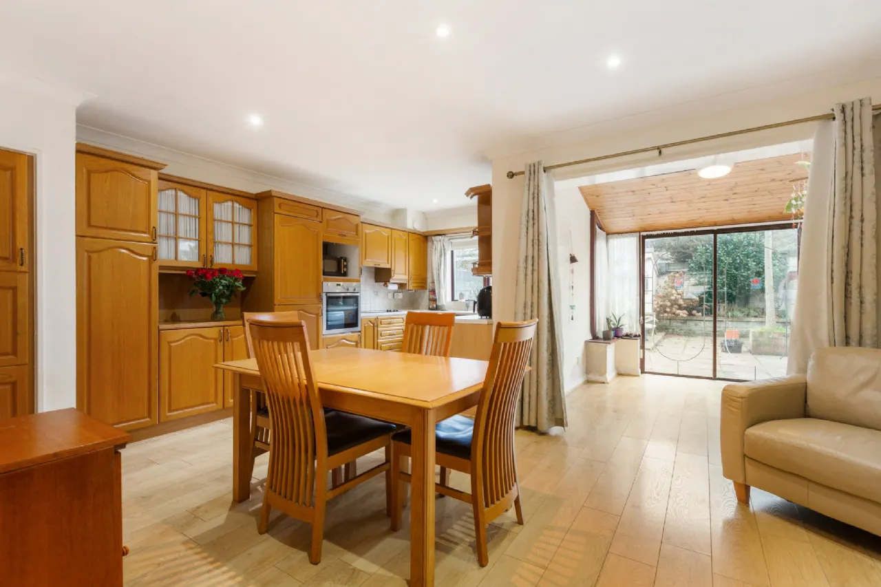 Situated close to a large open playing green, this home is ideal for families, with ample space for children to play and enjoy the outdoors. As you enter, you’re greeted by an entrance hall that leads to the spacious living room, where the bay window allows for natural light. The kitchen and dining room provide a practical layout with plenty of space to be modernised into a contemporary kitchen of your dreams.