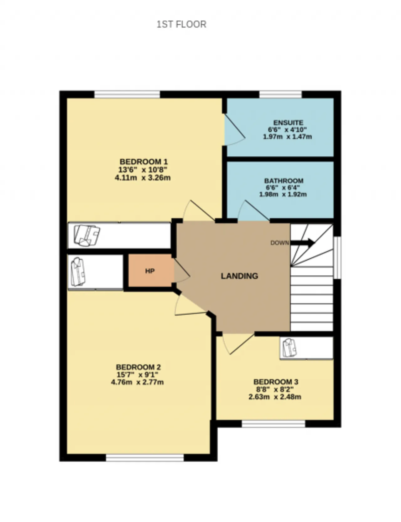 Upstairs, the sense of style continues across three generously sized bedrooms, each fitted with wardrobes and finished with newly laid flooring. The main bedroom benefits from a bright, newly refurbished en-suite, while a large family bathroom serves the remaining rooms.