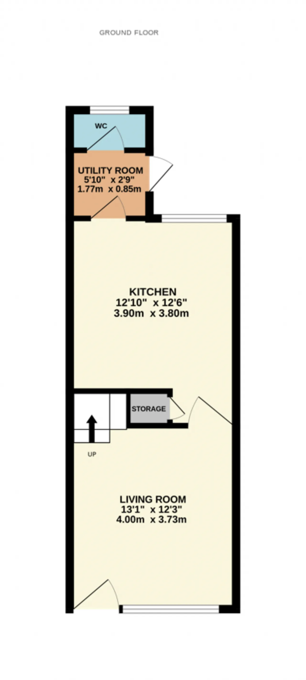 As one steps beyond the attractive red brick façade, we are welcomed into the spacious living room to the front of the property. A stairs and under stair storage divide the property between front and back.