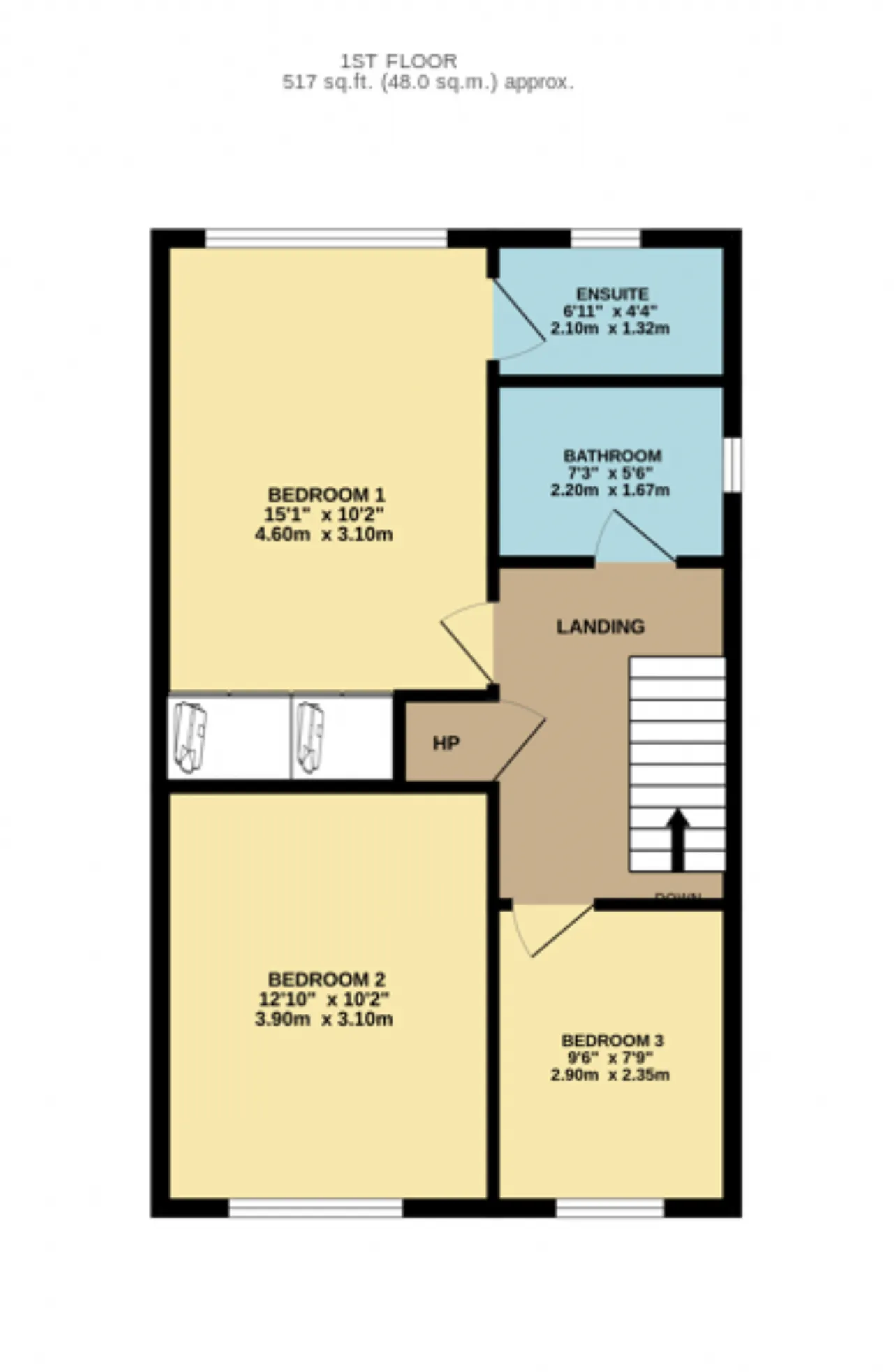 Bedroom 2 3.90m x 3.10m Spacious double located to the front featuring built-in wardrobe