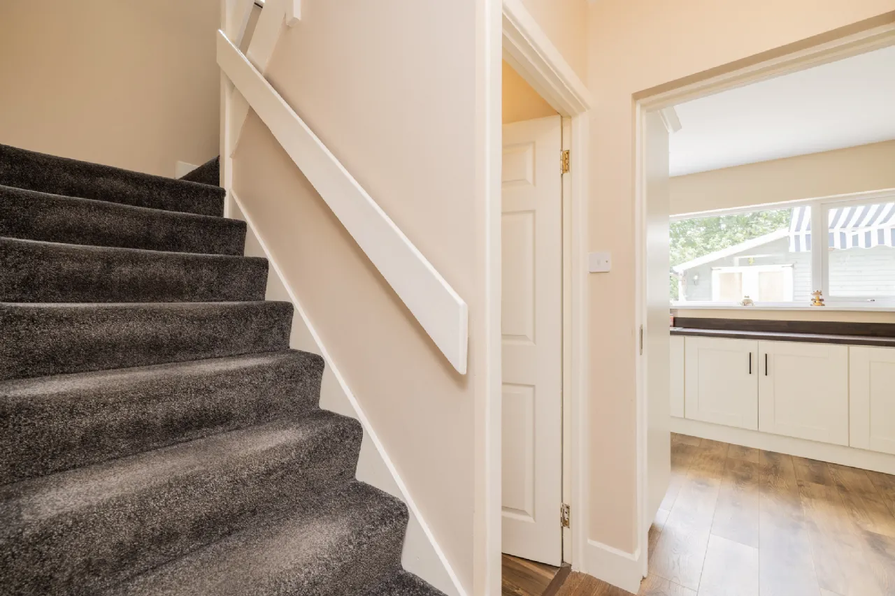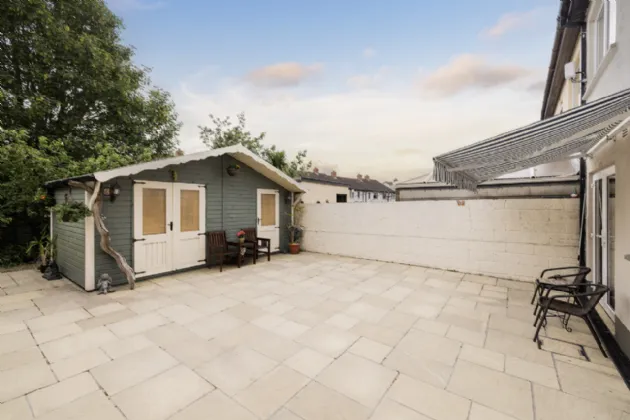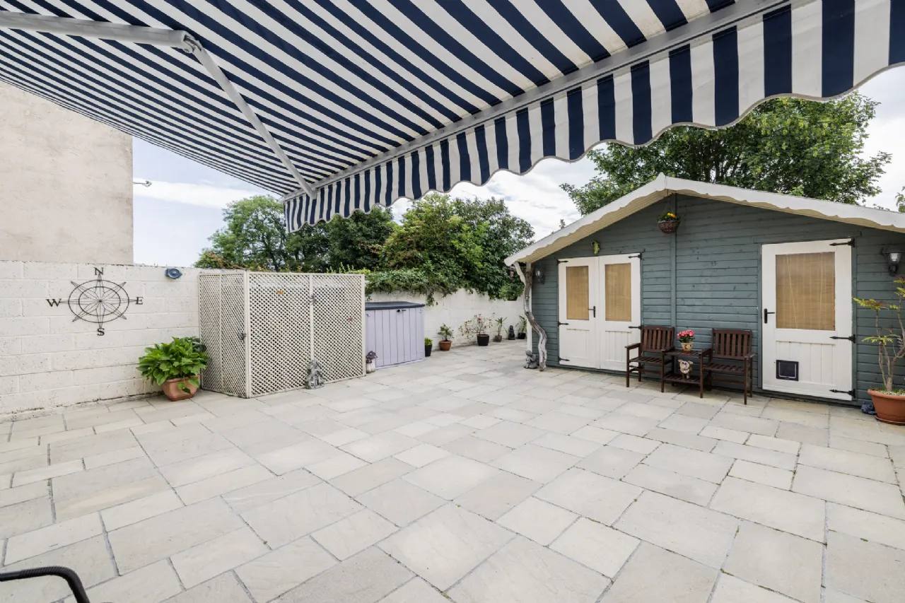 Outside The front garden offers private off-street parking for multiple cars and convenient side access to the beautifully maintained rear garden. The rear garden features a mix of paving and mature planting, along with a large garden shed for extra storage.