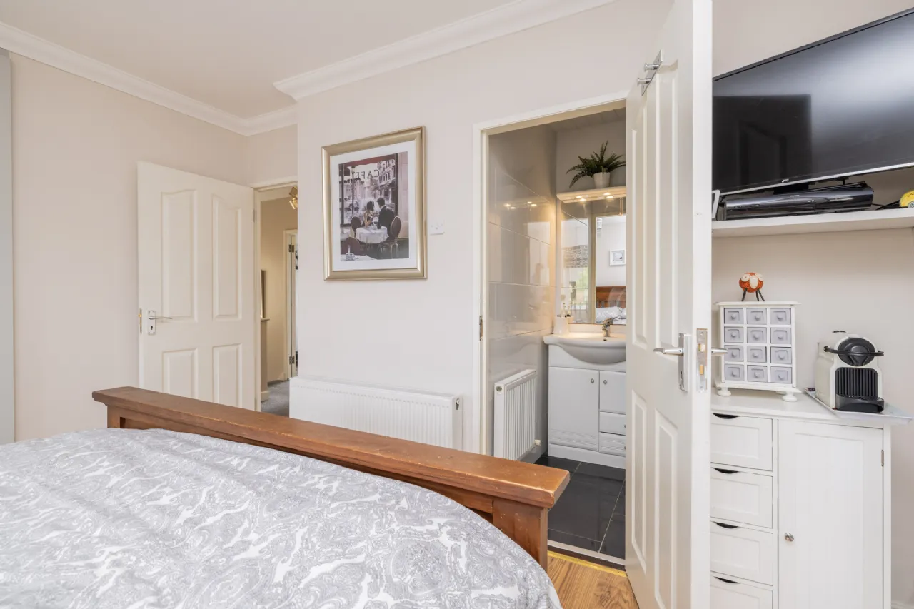 Upstairs, there are four excellent bedrooms, with the primary bedroom featuring ensuite facilities. A family-style bathroom completes the first floor and includes Stira access to the attic, which is partially floored for additional storage.