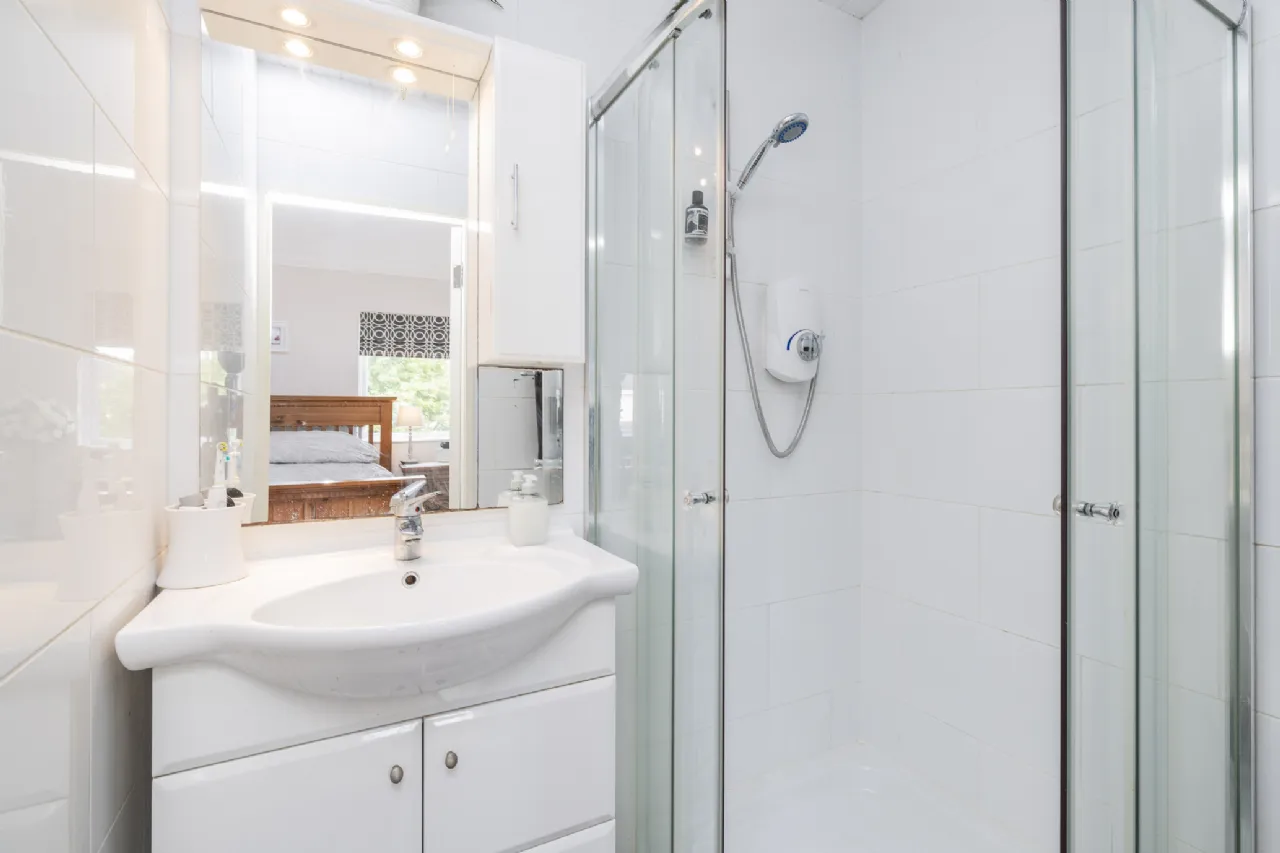 En-Suite 1.69m x 1.41m Fully tiled floor to wall, W.H.B, shower