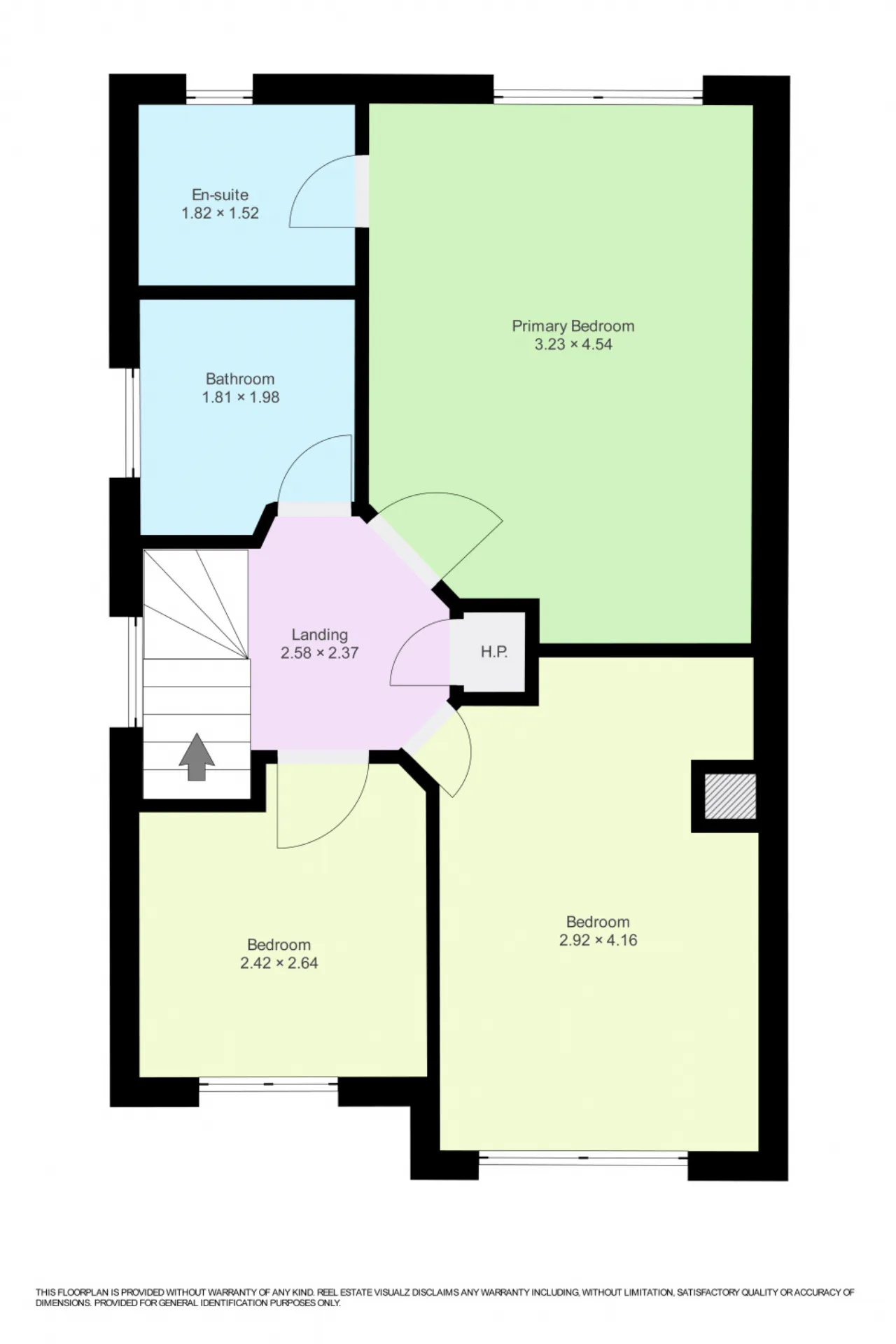 Landing 2.58 x 2.37m Hot press, carpet to stairs and landing, landing window.
