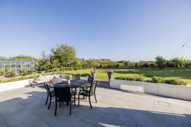 Outside Accessed via secure electric gates, the property opens to a spacious driveway leading to the residence and a detached double garage. Set on approximately 0.5 acres, the stunning wraparound gardens are beautifully landscaped with mature planting, offering a serene and private outdoor environment. To the rear, a substantial walled and paved patio area enjoys a sunny aspect—ideal for outdoor dining, entertaining, or simply relaxing in the peaceful surroundings.