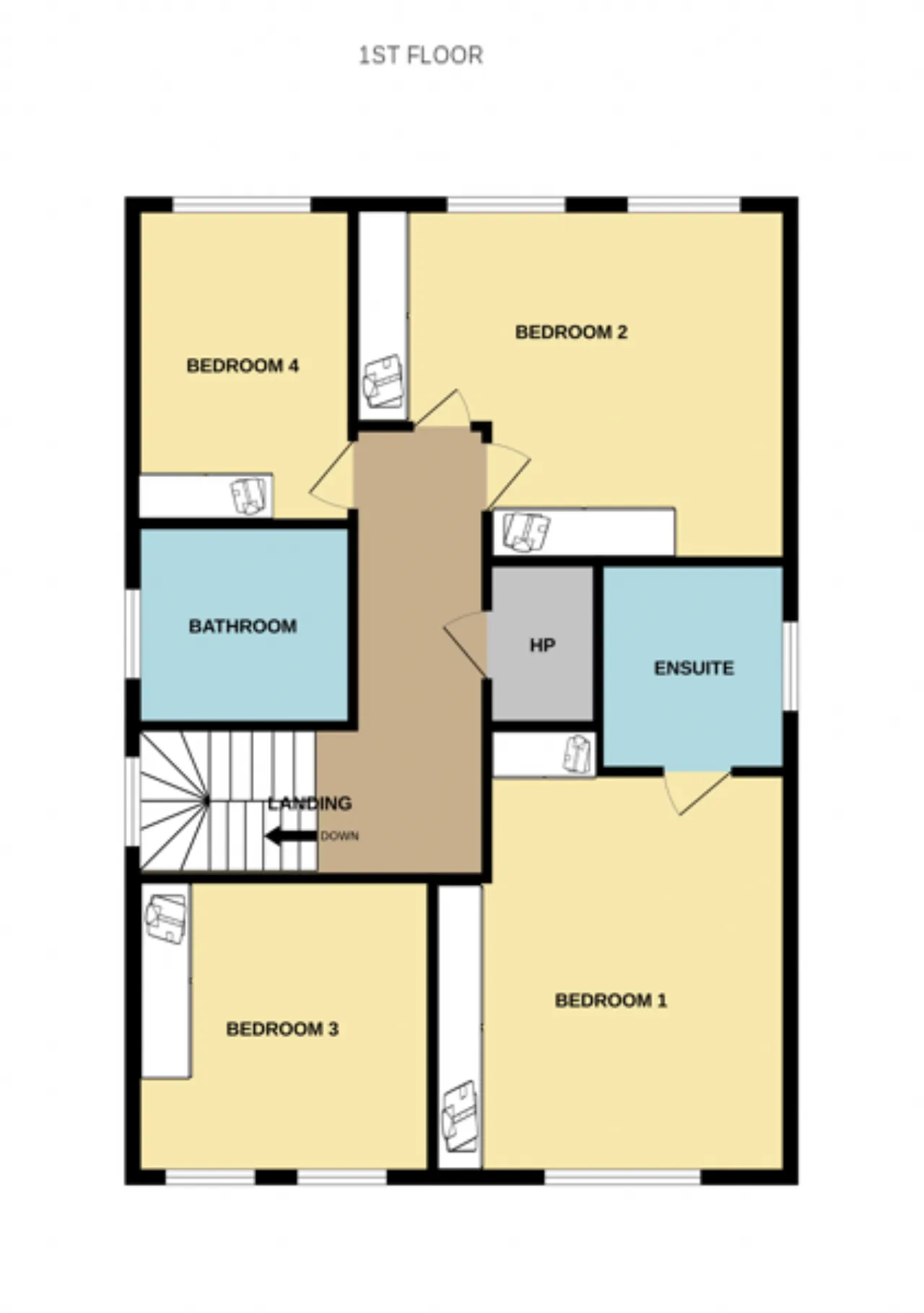 Upstairs, there are four spacious double bedrooms, including a principal bedroom with ensuite, together with a well-appointed family bathroom, offering ample space for a growing family.