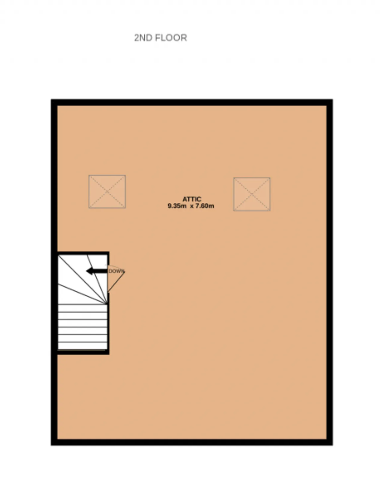 Attic 5.1m x 4.1m Two large velux windows. Storage areas under the eves.
