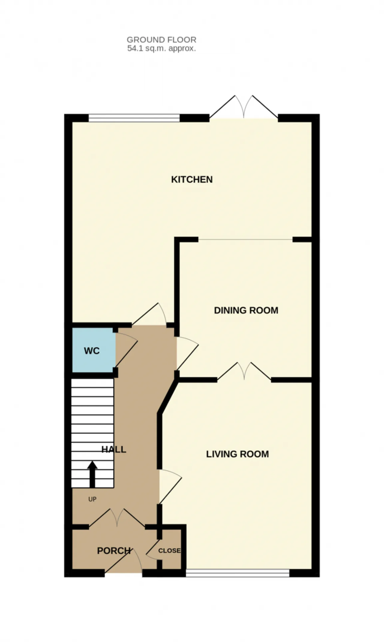 Guest W.C 1.6m x 0.8m Fully tiled floor, whb, w.c, window to side.