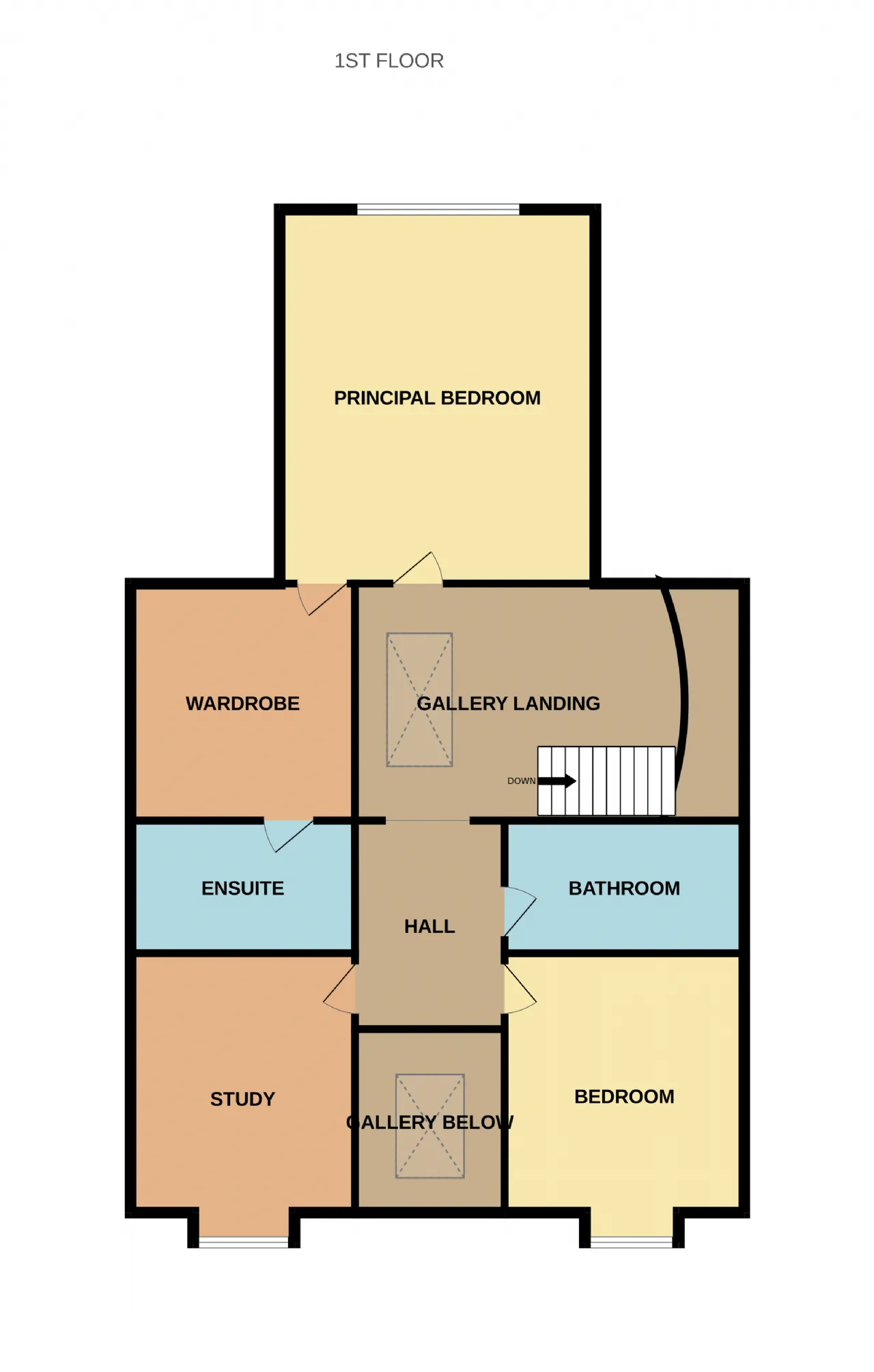 Landing area 5.00m x 1.75m Elegant helical staircase, attractive arch door to Principal Bedroom, feature roof lights