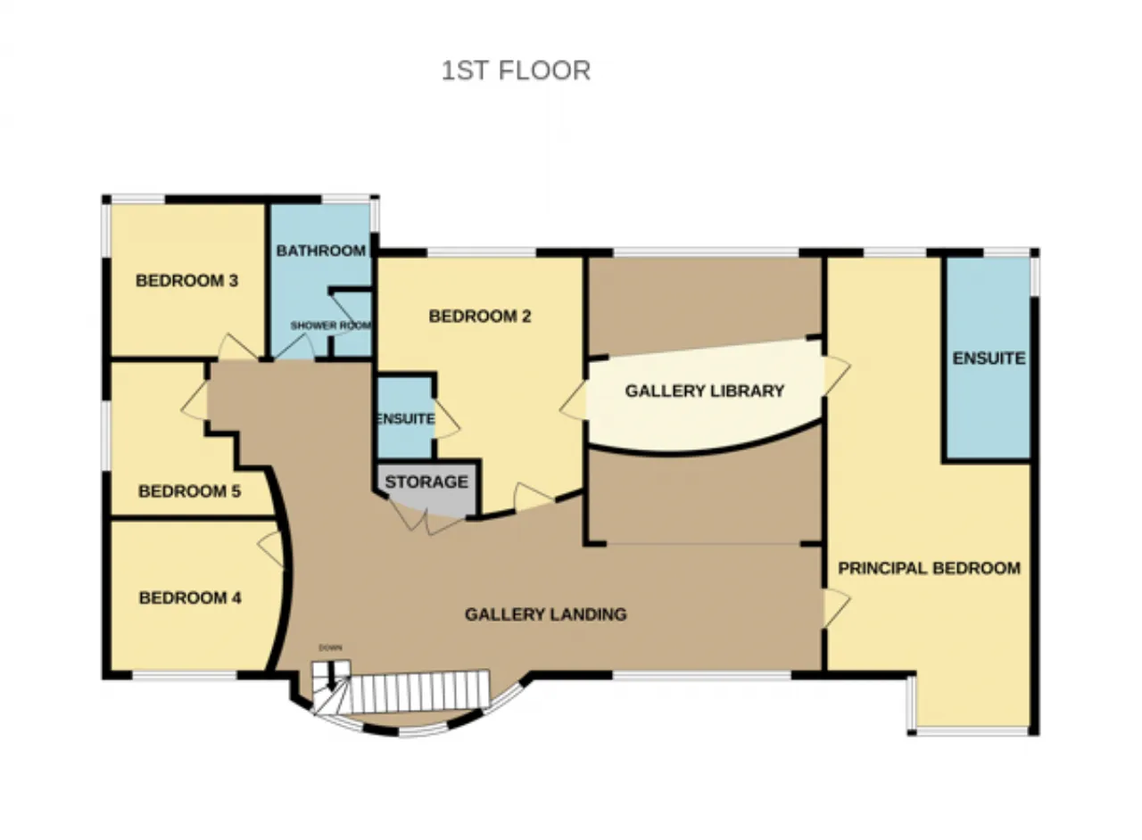 Gallery library- 5.42m x 1.98m Book storage units and excellent view over drawing room and out to the rear gardens