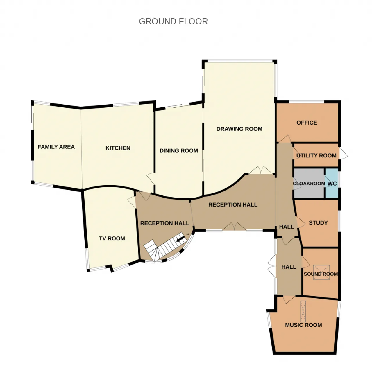 To the northern side of the ground floor there are two spacious studies, a large utility, guest cloakroom and WC, as well as a clever extension providing two multipurpose rooms currently in use as a music studio and recording room. This wing, while linked to the main house, also benefits from its own independent access via a bright reception hall. Upstairs, an impressive gallery landing with picture windows overlooks the front garden and leads to the principal bedroom which is exceptionally spacious with a large ensuite, picture windows to both front and rear, and a gallery-style library connecting to the guest bedroom which is also ensuite. Three further bedrooms, a family bathroom, and a generous linen press complete the accommodation.