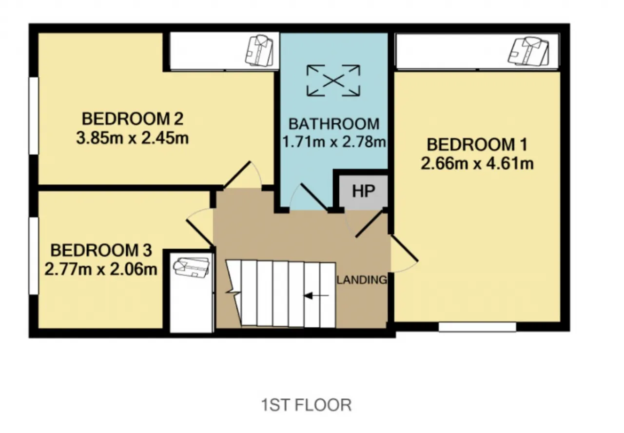Bedroom 3 2.77m x 2.06m Single bedroom, located to the front. Fitted wardrobes.