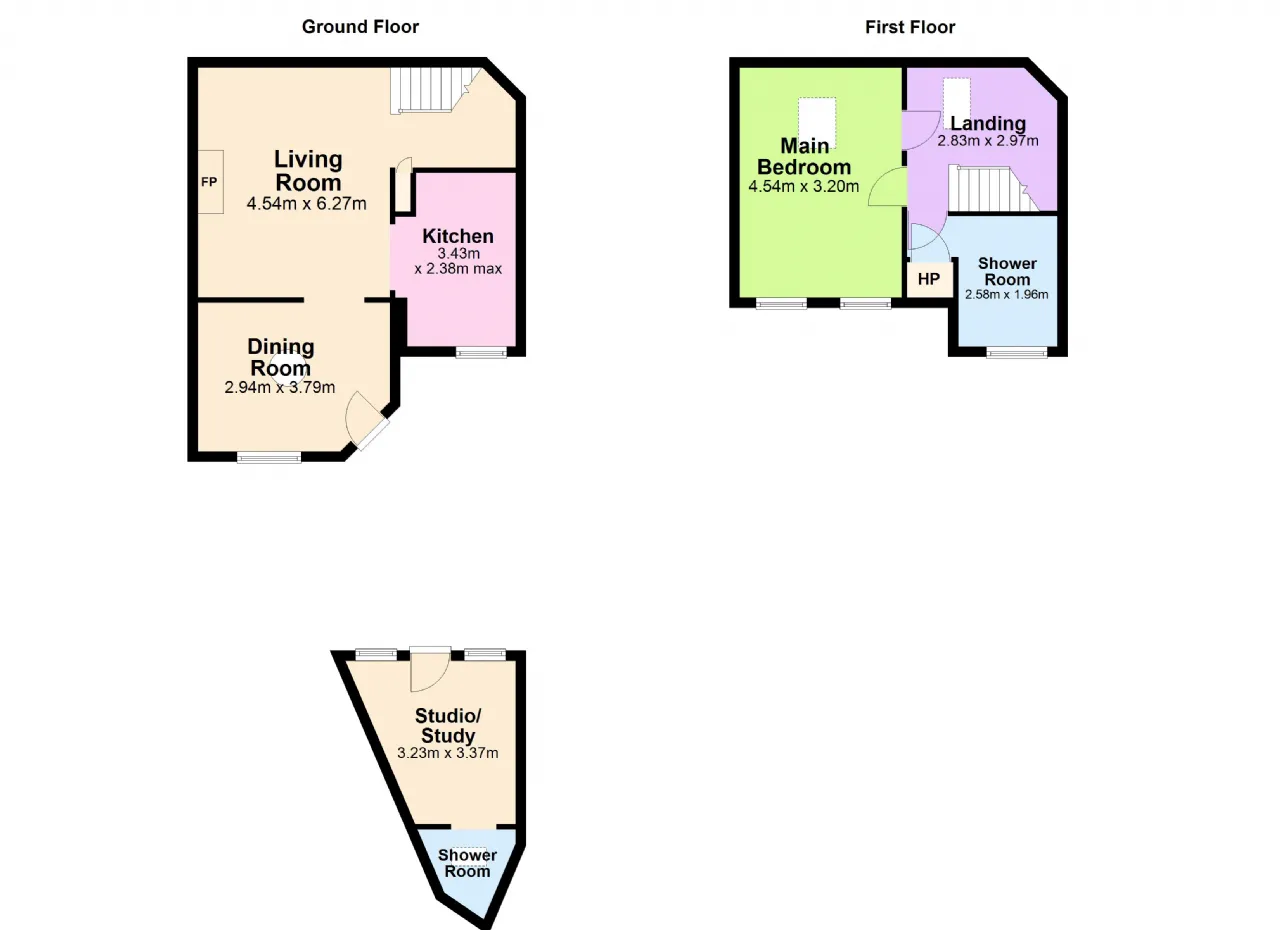 Shower Room 2.58m x 1.96m Tiled floor and walls, sink, shower, w.c.